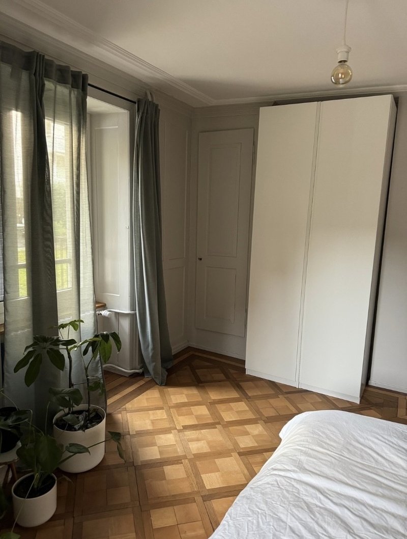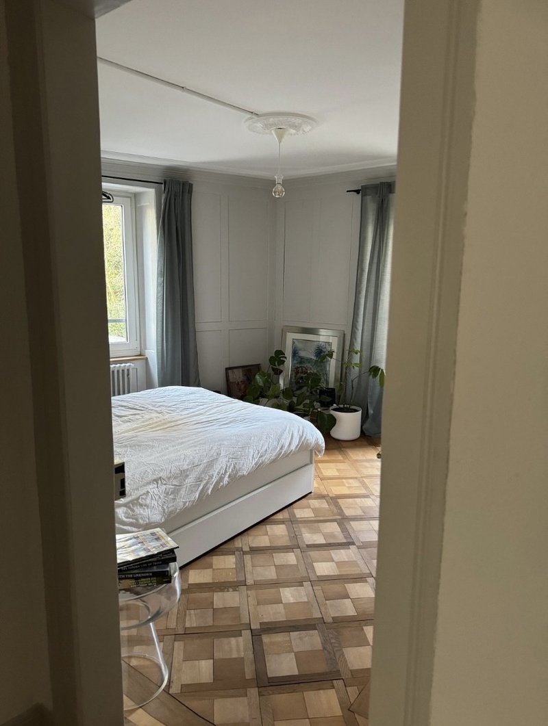 I’m leaving my cozy beautiful room in a spacious and elegant 4-room apartment in a charming Altbau building with only four parties in the entire house. The apartment has been renovated but still keeps all its historic character: beautiful wooden floors (with a gentle squeak), elegant wall details, and a warm, homely feel. The apartment has a dining room, living room, a little side room for jackets and shoes, two toilets, one bathroom, a spacious kitchen, and two bedrooms.