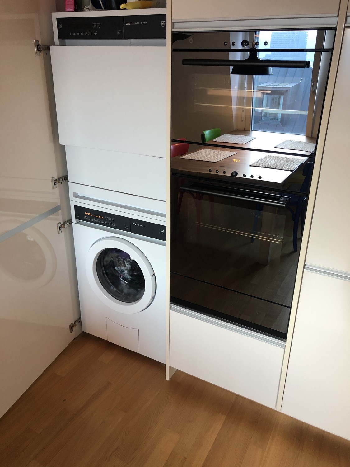 The flat is fully furnished and has a bathroom, a separated toilet, three bedrooms, a balcony, and a large kitchen and living space. The flat comes with fully equipped kitchen with a modern oven, steamer, and dishwasher. Additionally, there are private washing machine and tumble drier in the flat.