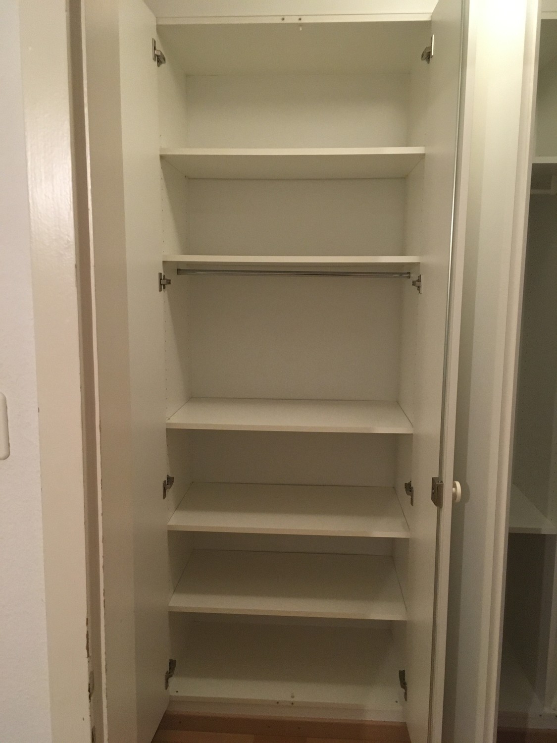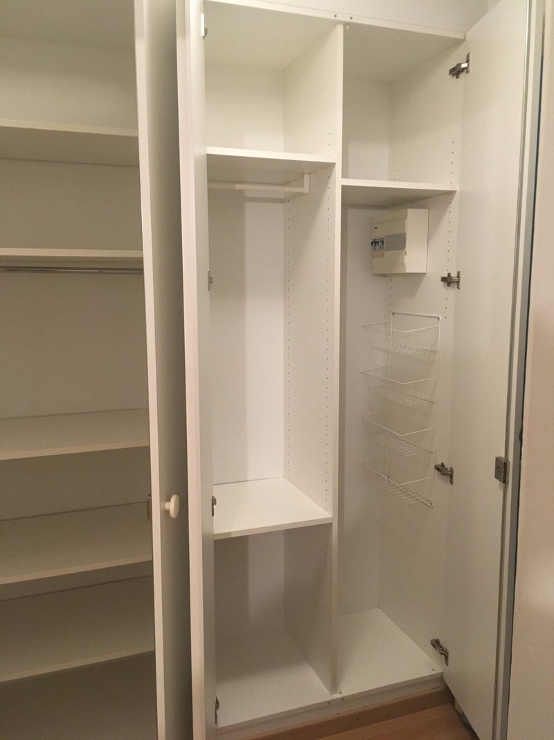 Kleine, nützliche Kochnische, ein kleines Bad mit Stehdusche, grosse Einbauschränke im Flur!