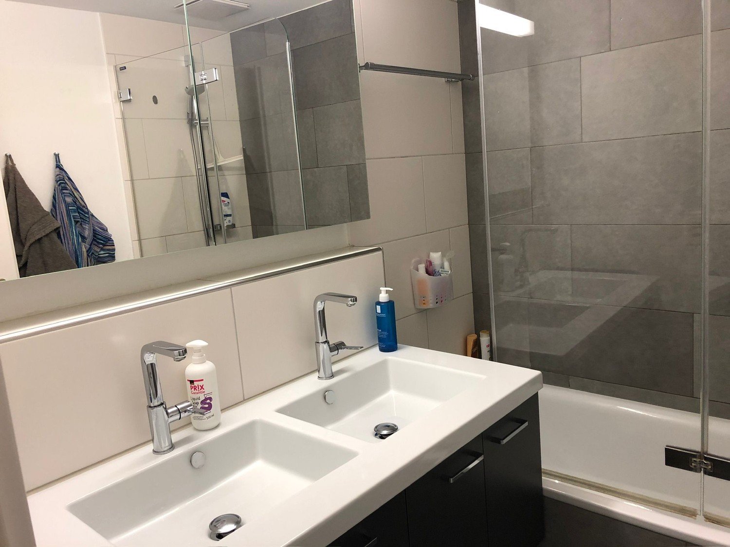 The flat is fully furnished and has a bathroom, a separated toilet, three bedrooms, a balcony, and a large kitchen and living space. The flat comes with fully equipped kitchen with a modern oven, steamer, and dishwasher. Additionally, there are private washing machine and tumble drier in the flat.