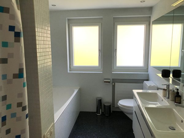 Badezimmer: Badewanne, Dusche (separat), zwei Waschbecken