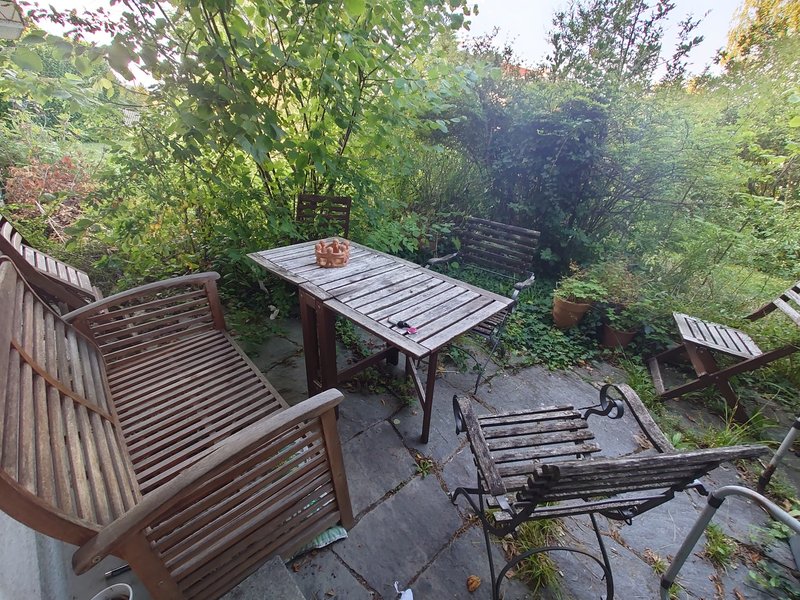 The apartment is a small green oasis in Zurich. The rooms are spacious, well insulated and have large windows with plenty of natural light. The entire apartment was renovated before we moved in. It is a four room apartment with three bedrooms and a fully furnished living room and kitchen. We also have a beautiful seating area in the garden surrounded by flowers. At night foxes and badgers sometimes pass by. It truly feels like a hidden place within the city.