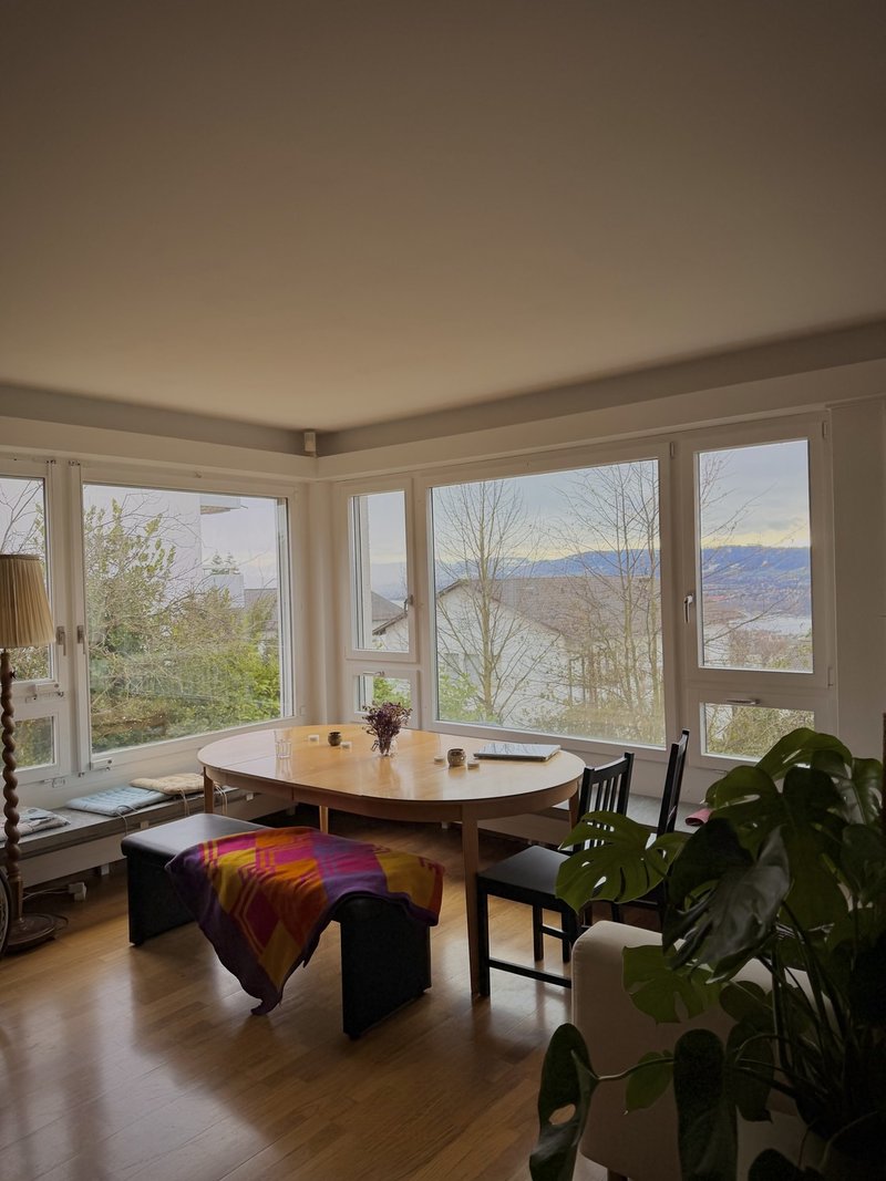 Room in a 7-Person Flatshare at Rigiblick with Stunning Views We are a 7-person flatshare at Rigiblick, enjoying breathtaking views of the city, the lake, and the mountains—especially from the living room and the balconies. The apartment is spacious (approx. 180 m²) and offers plenty of room for both shared flat life and personal retreat. The apartment features: * 7 bedrooms * A cosy living room with a fireplace * Kitchen with dining area * 2 bathrooms * 2 separate toilets * 2 balconies * Cellar * Shared laundry room * Shared garage parking space