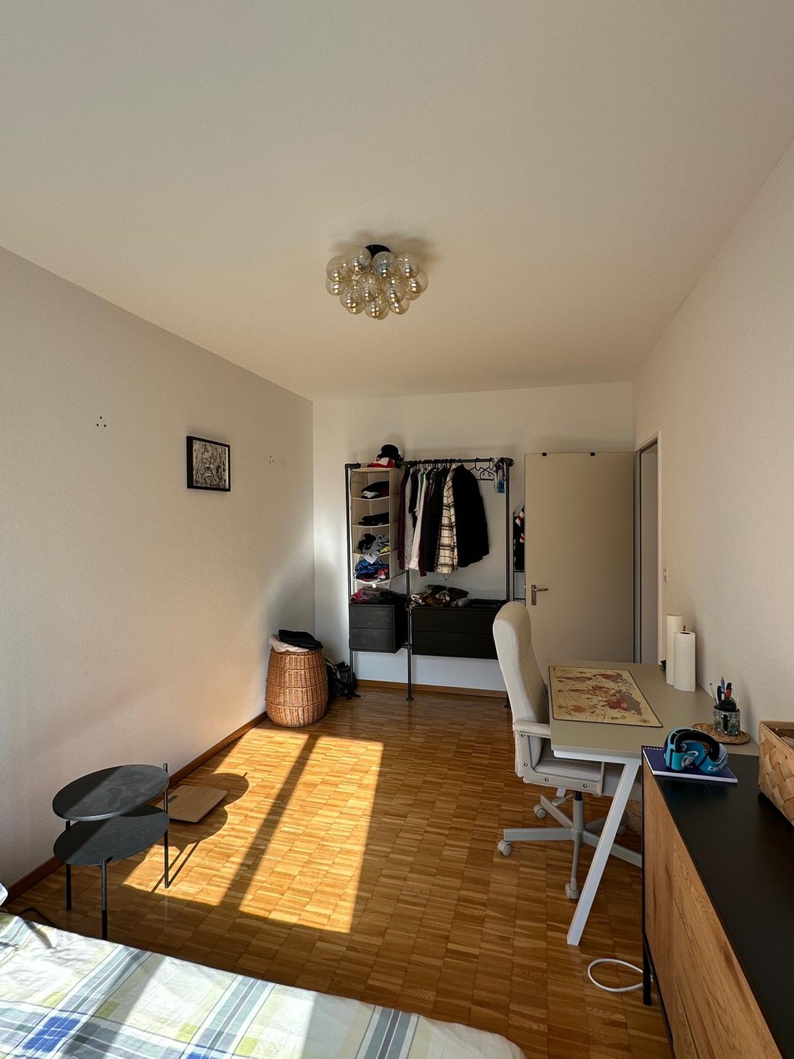 Das Zimmer ist leicht moebliert, kann aber auch ohne Moebel gemietet werden.