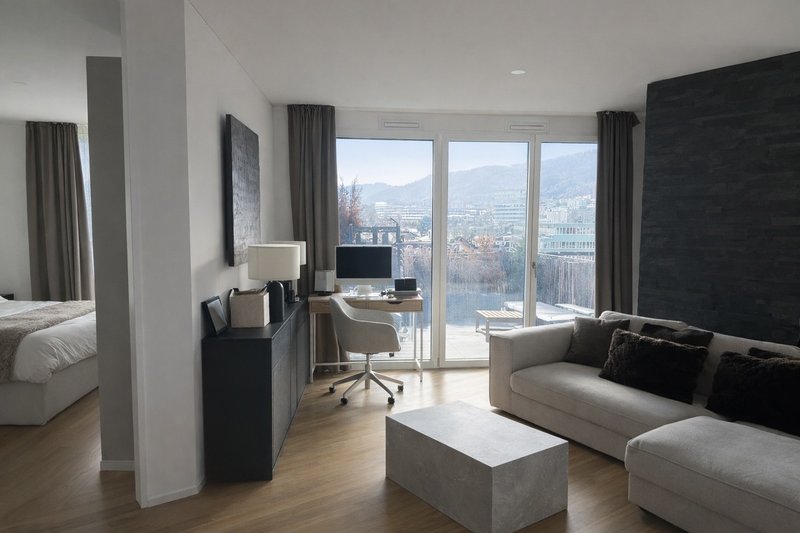 We are subletting our furnished 2.5 room new build apartment in the fantastic Binz area - very close to Binz train station, beautiful sunlight, terrace facing Uetliberg.