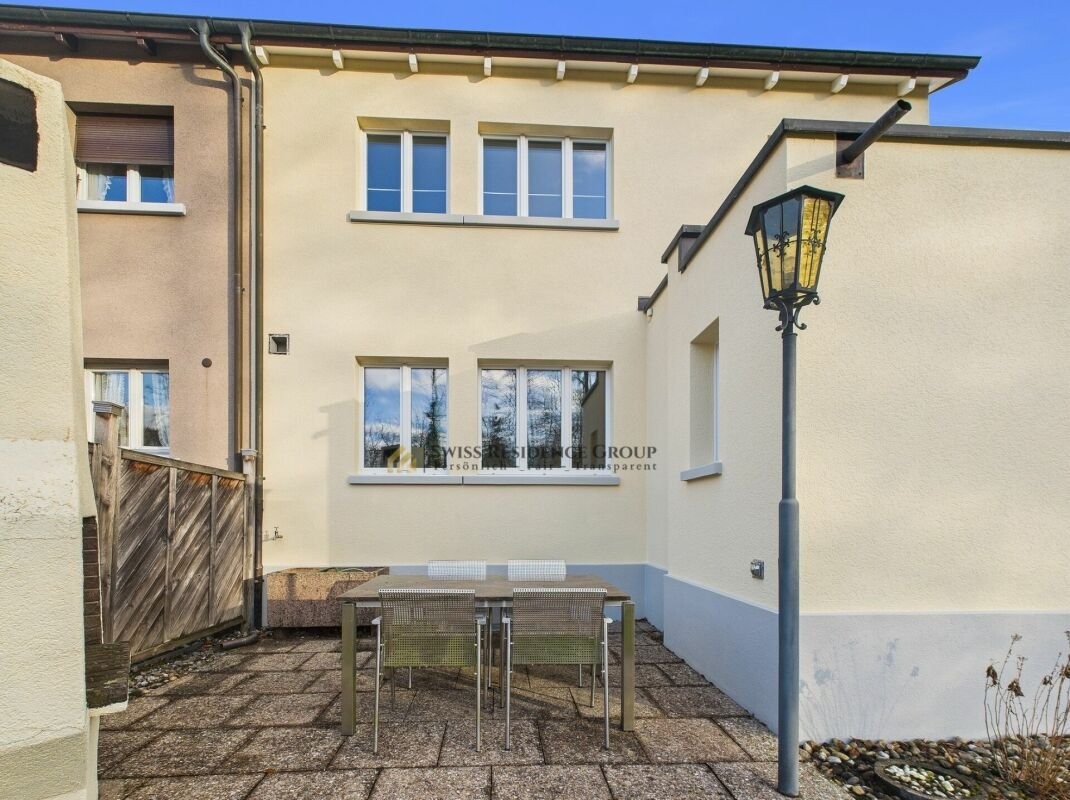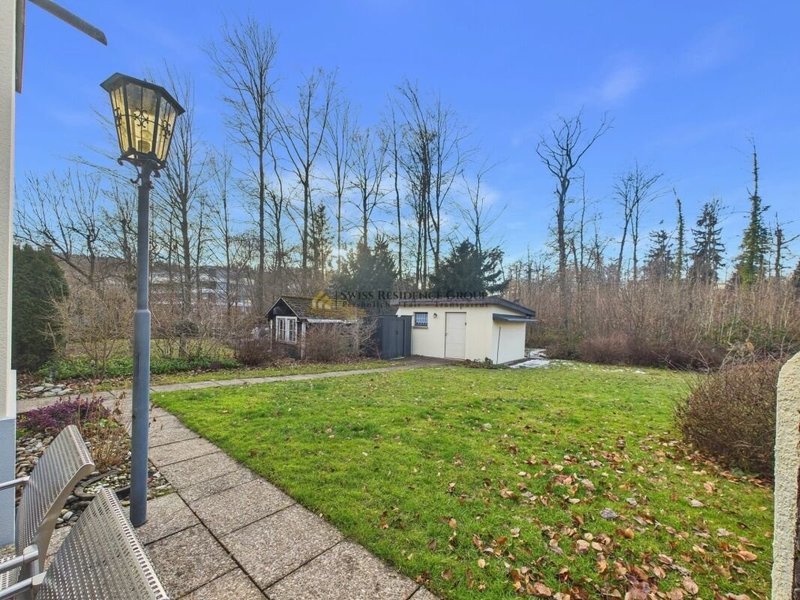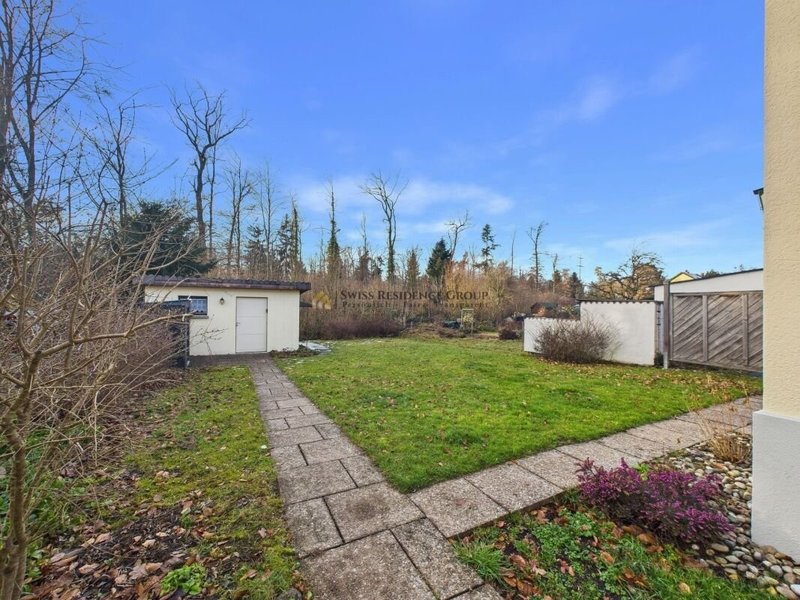 Dieses liebevoll renovierte Doppeleinfamilienhaus vereint heimeligen Wohncharakter, modernen Komfort und eine traumhafte Lage. Der grosse, lauschige Garten schliesst direkt an den angrenzenden Wald an und bietet viel Platz zum Entspannen, Spielen oder Gärtnern. Eine gemütliche Terrassenecke mit Pizzaofen lädt zum geselligen Beisammensein ein. Im Frühling wird der Garten komplett eingezäunt, sodass Sie hier noch mehr Privatsphäre geniessen können. Ein eigener Parkplatz direkt vor dem Haus ist inklusive, auf Wunsch kann ein zweiter Platz ausgebaut werden.