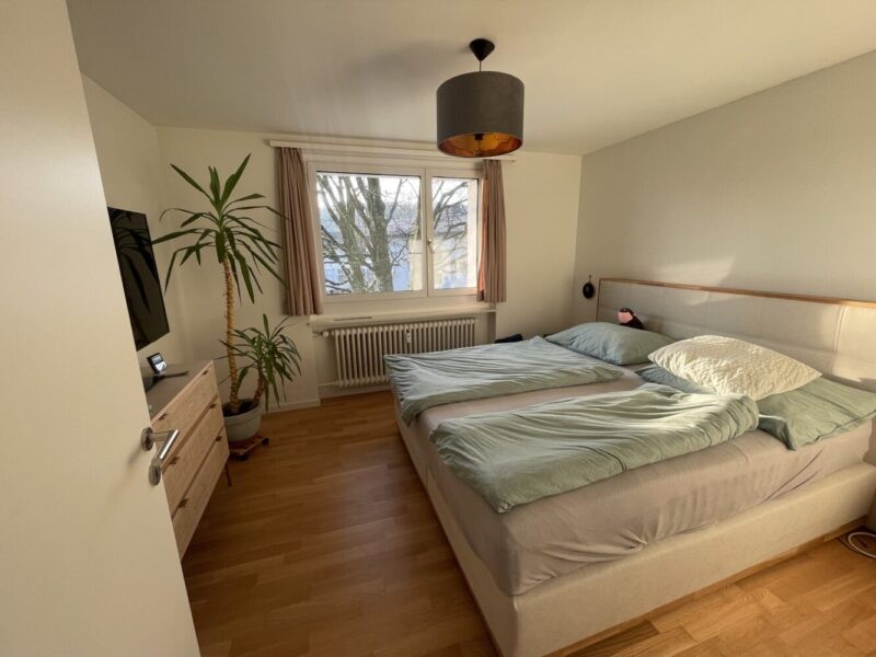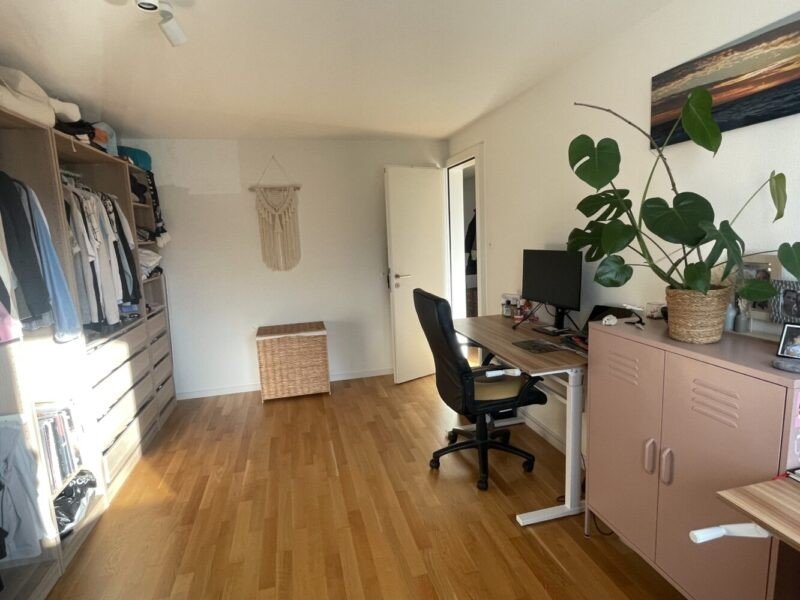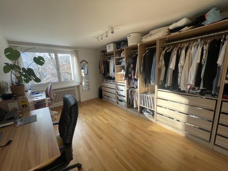 Das heisst: ein grosses 1.80m Doppelbett sowie zwei Homeoffice-Schreibtische und einen riesigen offenen Schrank. Einen herzigen Balkon sowie einen Wäscheturm ist ebenfalls Teil der Wohnung und wir vermieten sie nur an Personen, die auch unseren Parkplatz mitmieten. Ein Kellerabteil inkl. grossem Tiefkühler gehört ebenfalls dazu.