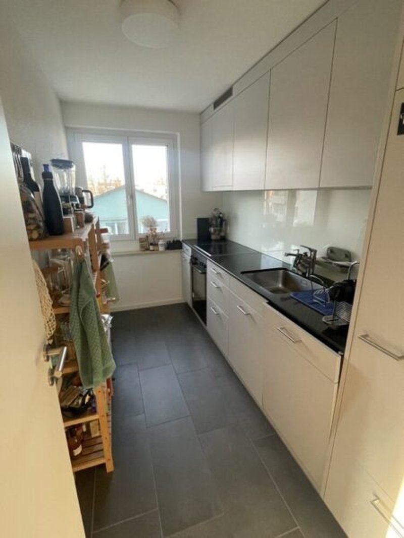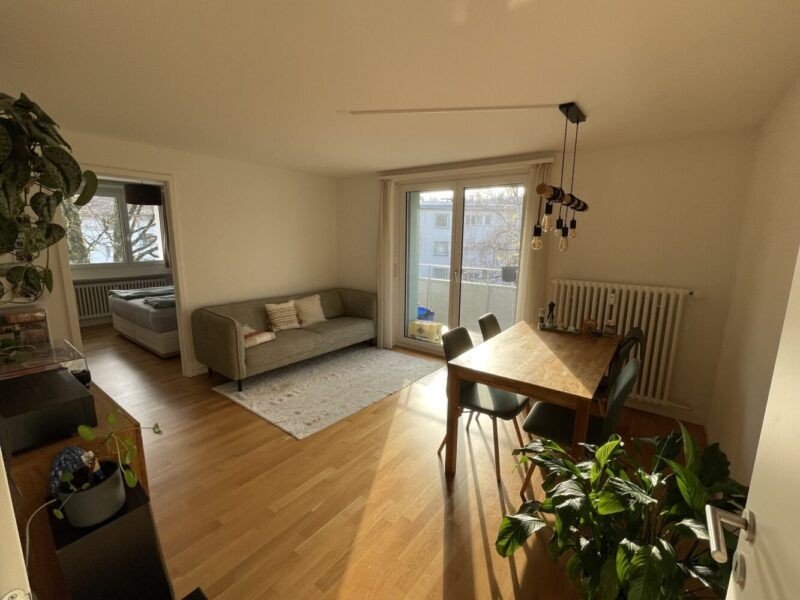 Die Wohnung ist sehr ruhig in Zürich Affoltern in einer 30er-Zone gelegen, 5 Minuten vom Wald entfernt und ca. 30 Gehminuten vom Katzensee. Trotzdem ist man innert 4 Minuten an der Bushaltestelle, die von den Linien 61/62 nach Oerlikon (ca. 7 Min. Fahrt bis Bahnhof) und 32 in die Innenstadt (ca. 15 Minuten Fahrt bis Limmatplatz) bedient werden. Die Wohnung liegt zuoberst im zweiten Stock (ohne Lift).
