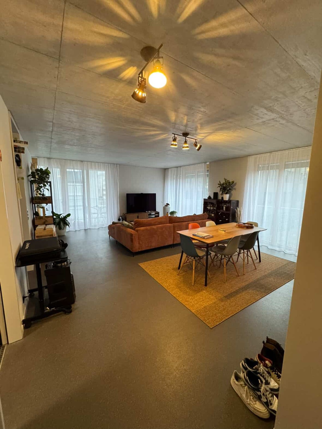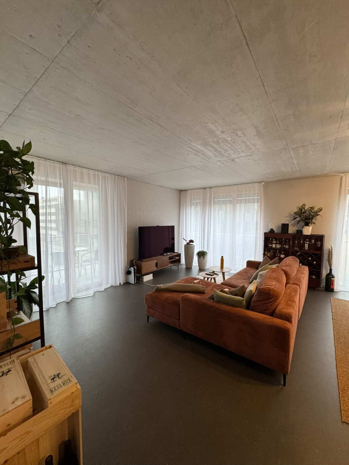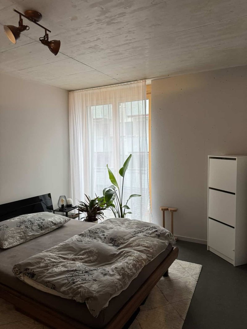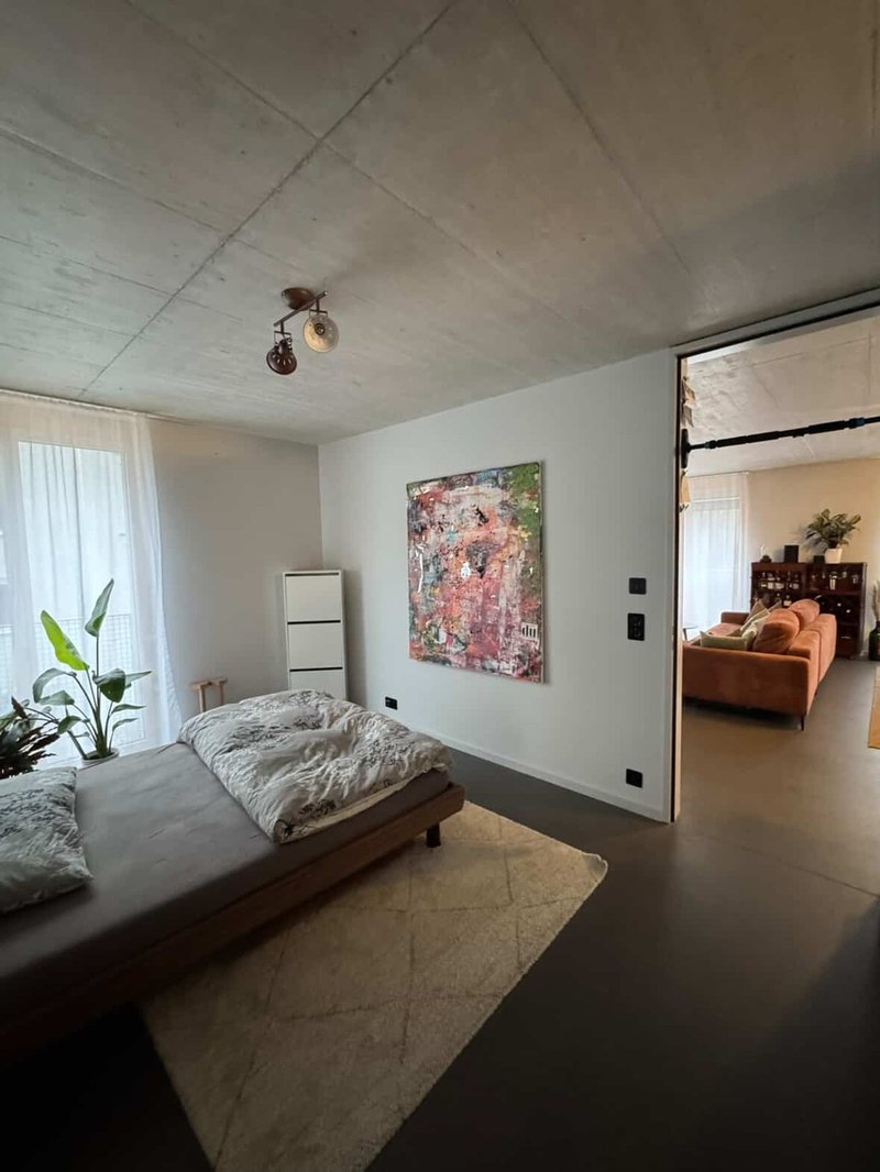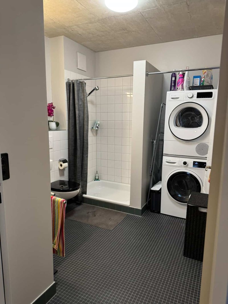 Die Wohnung ist top modern (Fertigstellung 2024) ich bin Erstbezüger der Wohnung und gab ihr natürlich die nötige Sorge. Die Wohnung ist sehr hell durch die vielen Fenster und zeichnet sich durch ihre hohe Decke, Betonspritzboden (super easy zum Putzen und man sieht keine Staub :) ) und moderen Geräte (Waschmaschine + Tumbler, Abwaschmaschine, Induktionsherd usw.) aus. Sie besitzt eine super Grösse und ihre Aufteiliung macht sie Ideal für Singels aber auch gut nutzbar als Pärchen zu zweit. Das Bad is topmodern und schön verarbeitet.