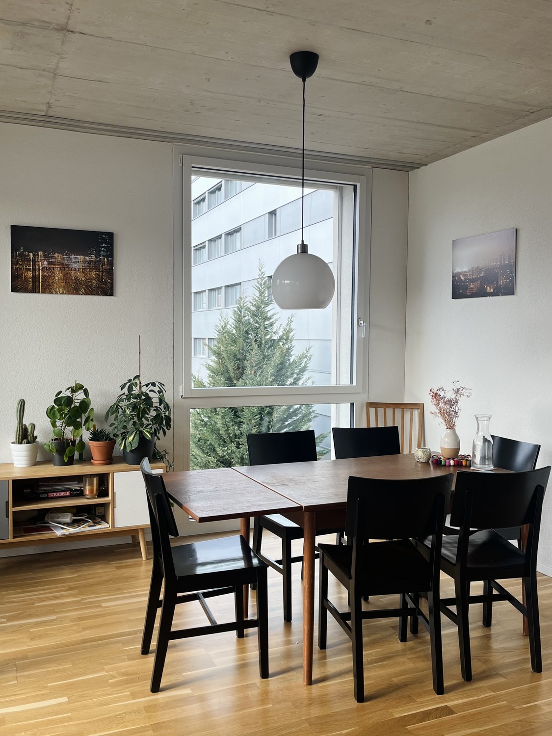 Wir, Merline und Gian (W+M 29), sind beide berufstätig (Primarlehrerin und Rechtsanwalt) und kochen/essen gerne auch mal zusammen, schauen einen Film/eine Serie abends, oder unternehmen etwas gemeinsam (z.B. bouldern in der nahegelegenen Boulderhalle, joggen an der Limmat). Wir beide geniessen es aber auch unter der Woche abends unterwegs zu sein oder in den Sport zu gehen.