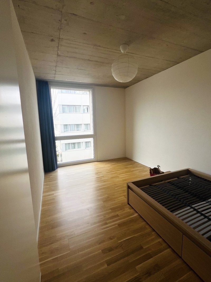 Die Wohnung verfügt über einen geräumigen Balkon, zwei Badezimmer, einen eigenen Waschturm, eine grosse Küche und ein grosszügiges Wohnzimmer (das Herzstück unserer Wohnung ;-)). Das Zimmer ist sehr hell, unmöbliert und wäre unbefristet verfügbar. Die Wohnung liegt nahe gelegen an der Letzibadi, dem Lochergut, dem Bahnhof Hardbrücke und dem Stadion Letzigrund.