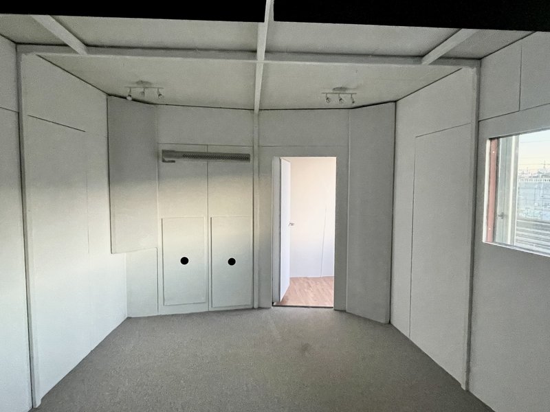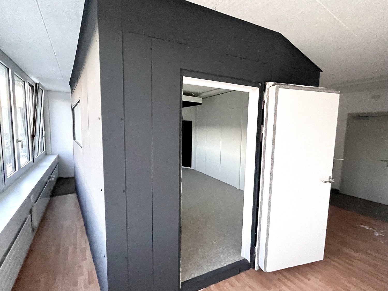 Tonstudio in Raum-in-Raum-Bauweise für Musikproduktion oder DJ's, gelegen im 2. OG eines Bürogebäudes. Die Konstruktion ist vollständig vom Bestandsgebäude entkoppelt.