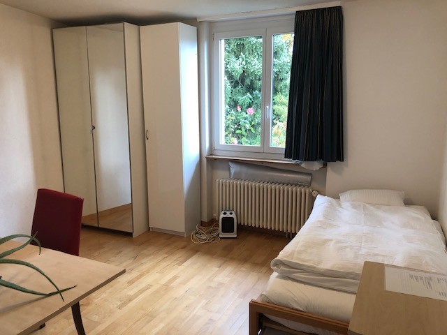 Quiet, furnished business studio in Zuerich-Hoengg with private entrance and private bathroom - designed as a weekday base for one professional. There is no kitchen (by design), but a handy coffee/tea setup for light snacks and drinks.