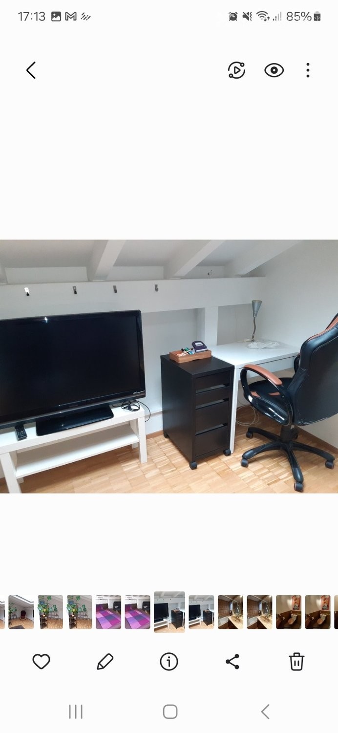 Schönes großes Zimmer ab 1. März im Dachgeschoss zu vermieten. Voll möbliert. Ruhige Lage. Gemeinsame Nutzung von Küche, Bad und Balkon. Miete inklusive Strom, Internet usw. Eigener Kühlschrank vorhanden.