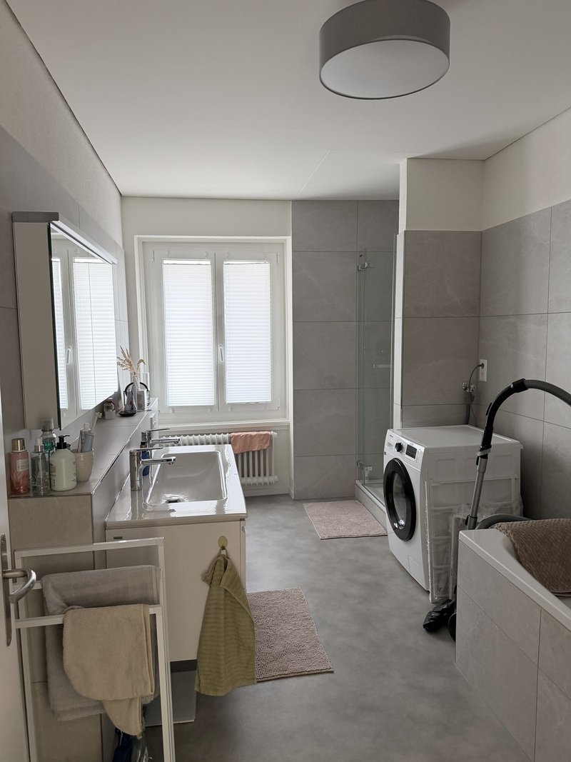 Die Wohnung ist komplett ausgestattet (Küche mit allem, was man braucht, Waschmaschine etc.). Das Zimmer kann optional möbliert übernommen werden. Es gibt eine Parkplatzmöglichkeit. Einkaufsmöglichkeiten sind in ca. 5 Minuten zu Fuss erreichbar, Tram und Bus halten direkt vor der Tür – also super angebunden.