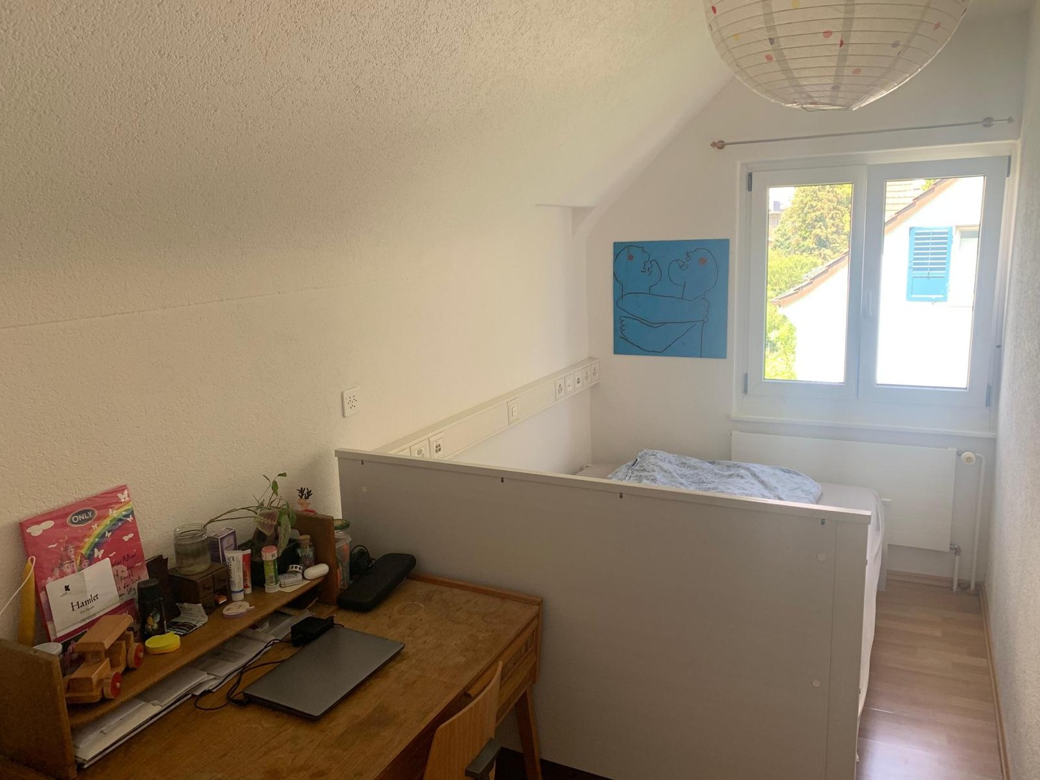 Das Zimmer ist eher klein, ca. 9m2, dafür auch günstig. Aber im und ums Haus hat es dafür ganz viel Platz. Das Zimmer kann mit schon vorhandenem Bett übernommen werden und ist befristet bis 30.9.2026.