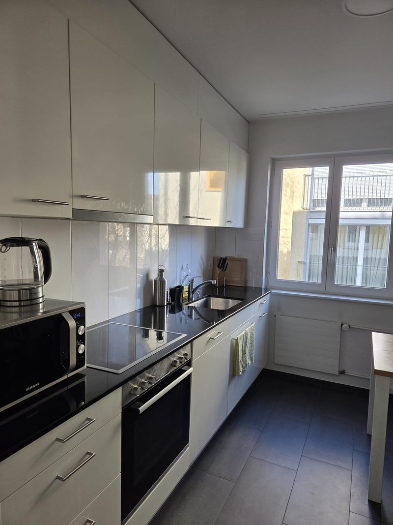 Unsere 4-Zimmerwohnung liegt super zentral in einem ruhigen, familiären Quartier in Oerlikon nähe Zürichwald (perfekt zum Joggen) und mit nahen Einkaufsmöglichkeiten (ca. 10 Gehminuten zu Coop und Denner). Man ist schnell in der Innenstadt oder am HB. In der Nähe: Bus- und Tramhaltestelle in 5 Gehminuten, Oerlikon Bahnhof 3 Busstationen entfernt, Uni Irchel 2 Minuten und Uni Zentrum/ETH 12 Minuten mit dem Tram entfernt, Zürich HB in unter 20 Tram-Minuten erreichbar