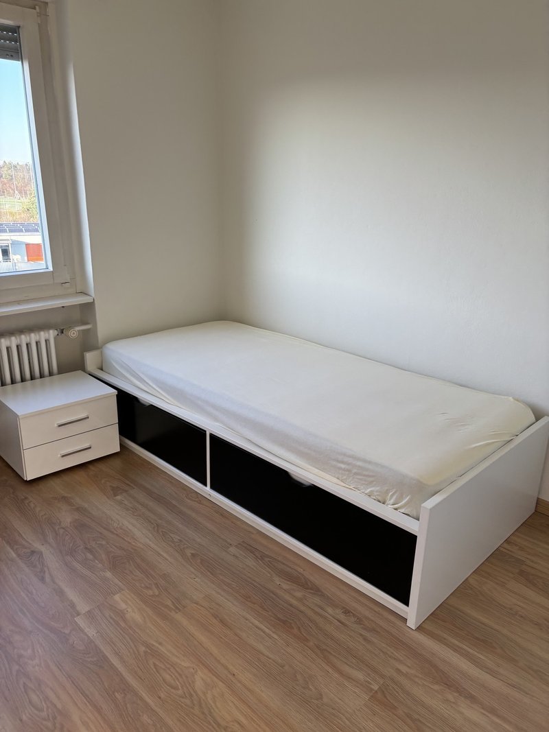 Zimmer und Ausstattung: • Das Zimmer ist vollständig möbliert mit einem Bett, Schrank, Stuhl und Nachttisch • Küche und Badezimmer mit Badewanne stehen zur Mitbenutzung .