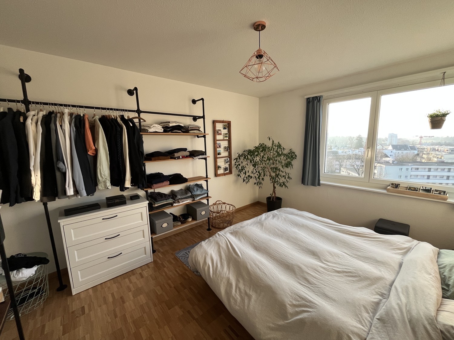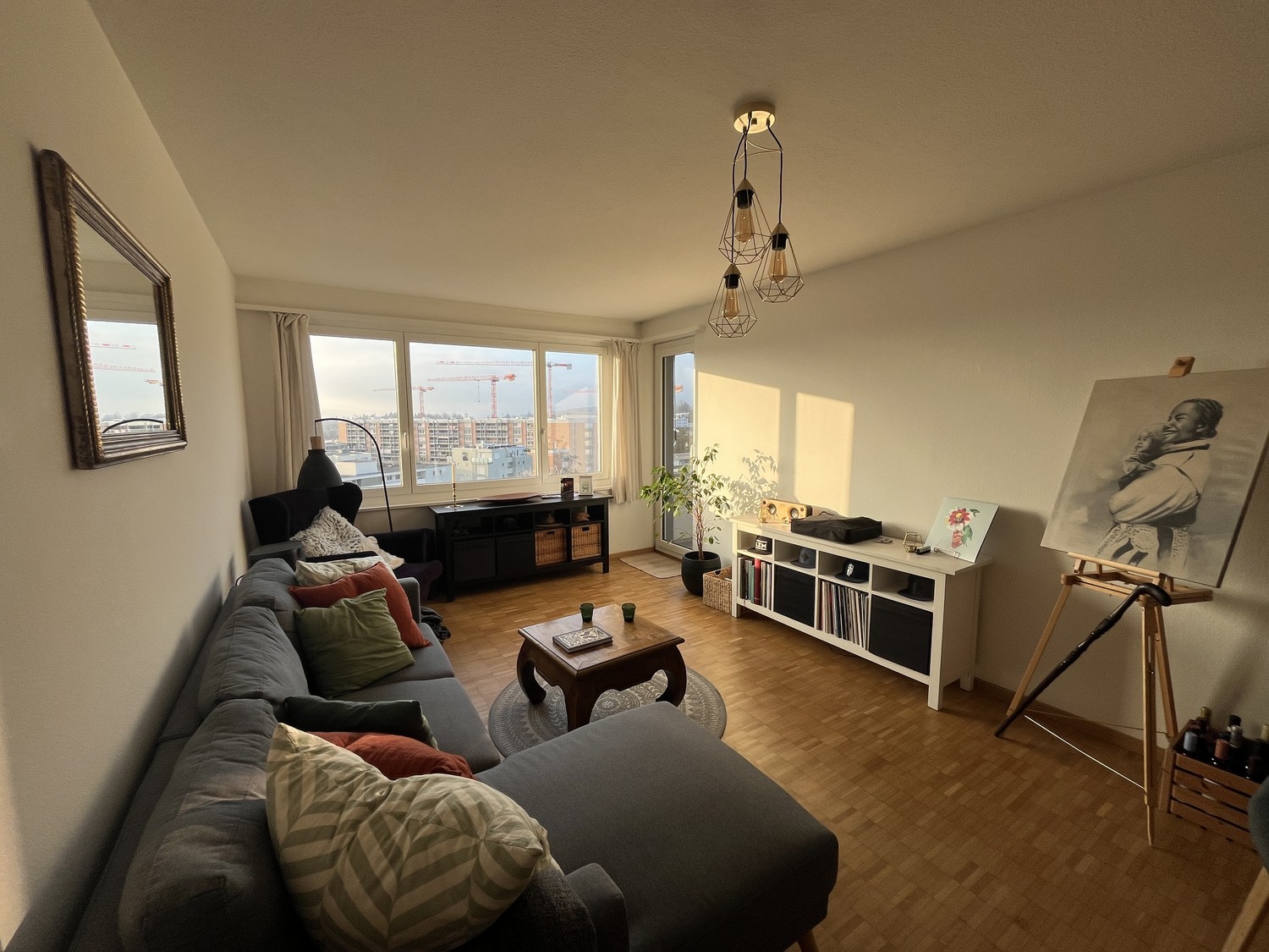 Da ich für knappe zwei Monate beruflich unterwegs sein werde, biete ich meine grosszügige und gemütliche Wohnung von ca. 8. März bis Ende April 2026 zur Untermiete an. Die Wohnung befindet sich im obersten 8. Stock und überzeugt mit ihrer Helligkeit, einem sehr grosszügigen Wohnzimmer und einem grossen Balkon - perfekt, um den Sonnenuntergang zu geniessen.