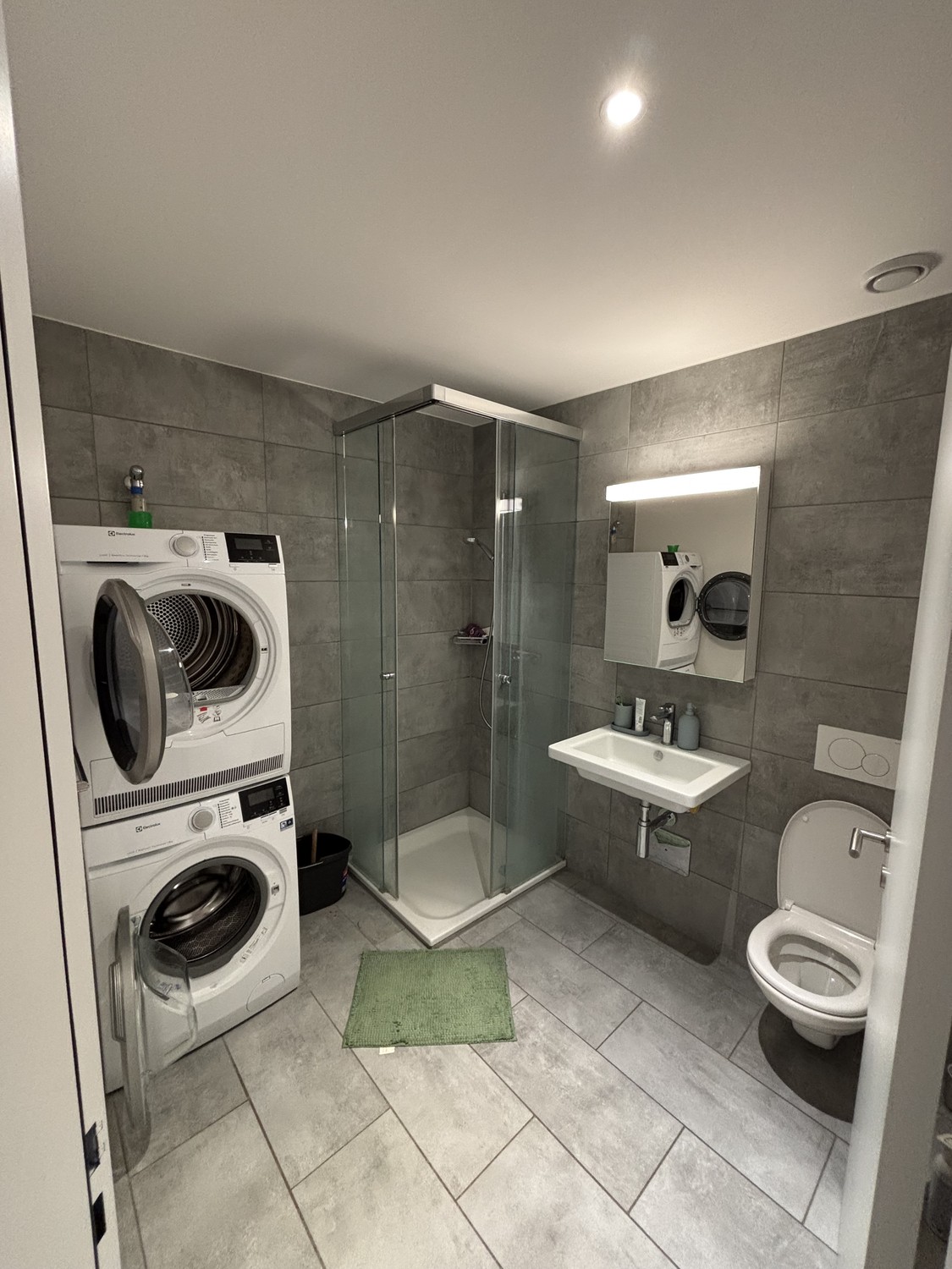 The apartment is part of a new building and has a modern kitchen, including a dishwasher and induction cooking. A washing machine and drier are also available in the apartment.