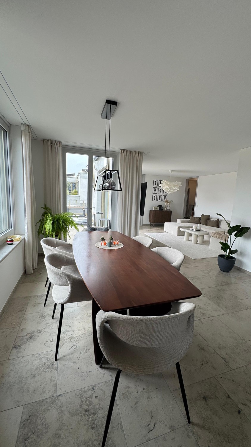 Die Wohnung ist gross und hell mit viel natürlichem Licht, voll möbeliert mit hochwertigen Möbeln (teils Designer). Der offene Wohn- und Essbereich lädt ein um Freunde willkommen zu heissen und von der grosszügen Terrasse kann man die Berge und den Utliberg sehen.