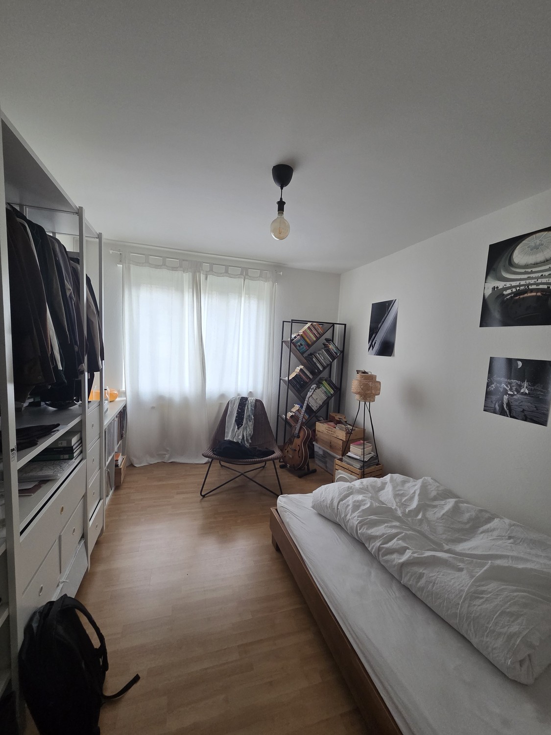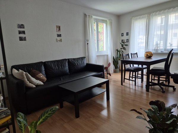 Ideally, we are looking for a female student aged 24–28 who shares our left-wing political views and is queer-friendly. They should be equally social, up for a cosy movie night, a shared meal or a chat in the kitchen, but also respect each other's privacy – a good mix of both. Unfortunately, the whole building is due to be demolished (also the building next door is currently being built, so there is construction noise on weekdays from 7AM-5PM until about Spring 2026), so the room can only be rented until December 2026 – approximately one year. The rent is CHF 920 per month (excluding EWZ costs and SERAFE). The deposit would be CHF 865