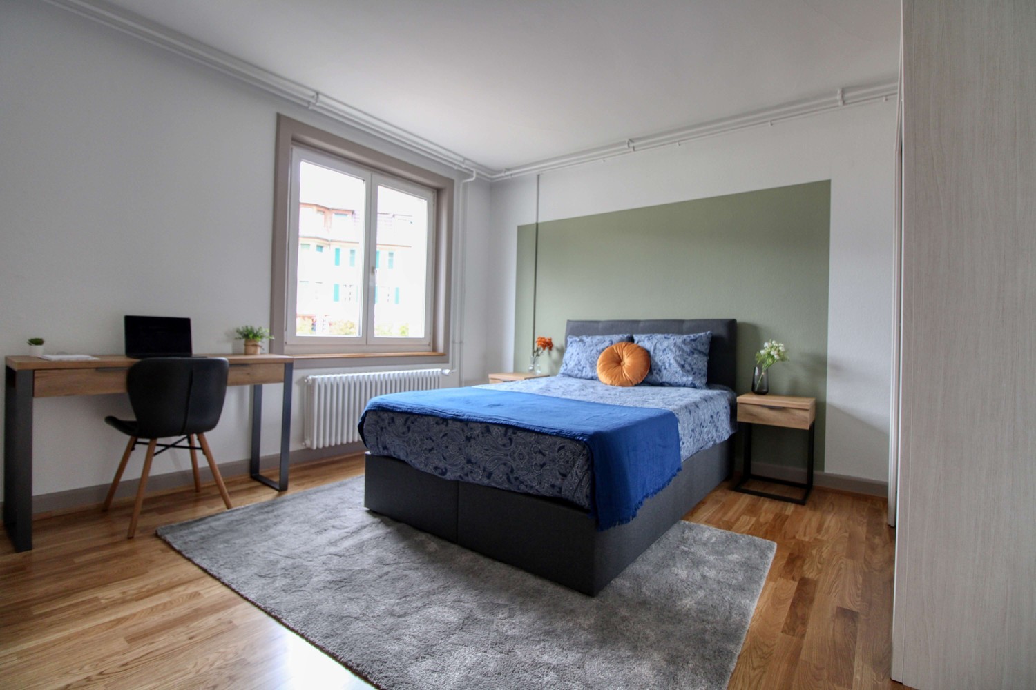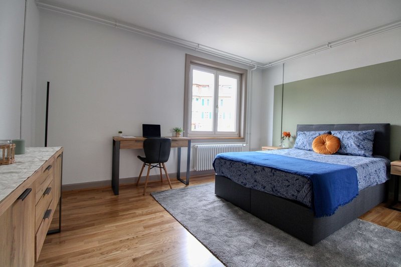 Welcome to Matthew, our spacious coliving apartment ideal for young professionals, located at Wehntalerstrasse 118, 8057 Zürich. This recently renovated apartment boasts five spacious rooms, meaning you will share your home with four friendly flatmates. The modern kitchen is perfect for communal meals and is adjacent to a lovely balcony, ideal for enjoying morning coffee or evening chats. The apartment also features a bathroom with a shower, toilet, and sink, and an additional bathroom with a toilet and sink, ensuring convenience for all residents. The stylish, modern furniture adds elegance and functionality to your living space.Matthew is perfectly situated in Zurich Oerlikon, a major transportation hub. The nearest tram station is only a four-minute walk away, providing quick access to Zurich Oerlikon train station within minutes. This station offers extensive train connections, including local S-Bahn services, long-distance trains, and international routes, making commuting and exploring Switzerland effortless.Living in Oerlikon also means being close to a wealth of amenities and green spaces. Irchel Park and Zurich Forest are nearby, offering opportunities for outdoor activities like jogging, picnics, and walks. The Swiss Federal Institute of Technology (ETH Zurich), one of the world's leading universities, has facilities in Oerlikon, making it an ideal location for students and researchers. Daily shopping is convenient with supermarkets and bakeries just around the corner, ensuring you have everything you need within easy reach.Community activities at Matthew enhance the coliving experience. Host dinner parties in the modern kitchen, enjoy relaxing evenings on the balcony, or unwind in the comfortable living areas. Take advantage of the nearby parks for group hikes and picnics, or organize study sessions with fellow ETH Zurich students. Living at Matthew offers a blend of modern amenities, community engagement, and easy access to both urban conveniences and natural retreats, making it a perfect home for young professionals in Zurich.