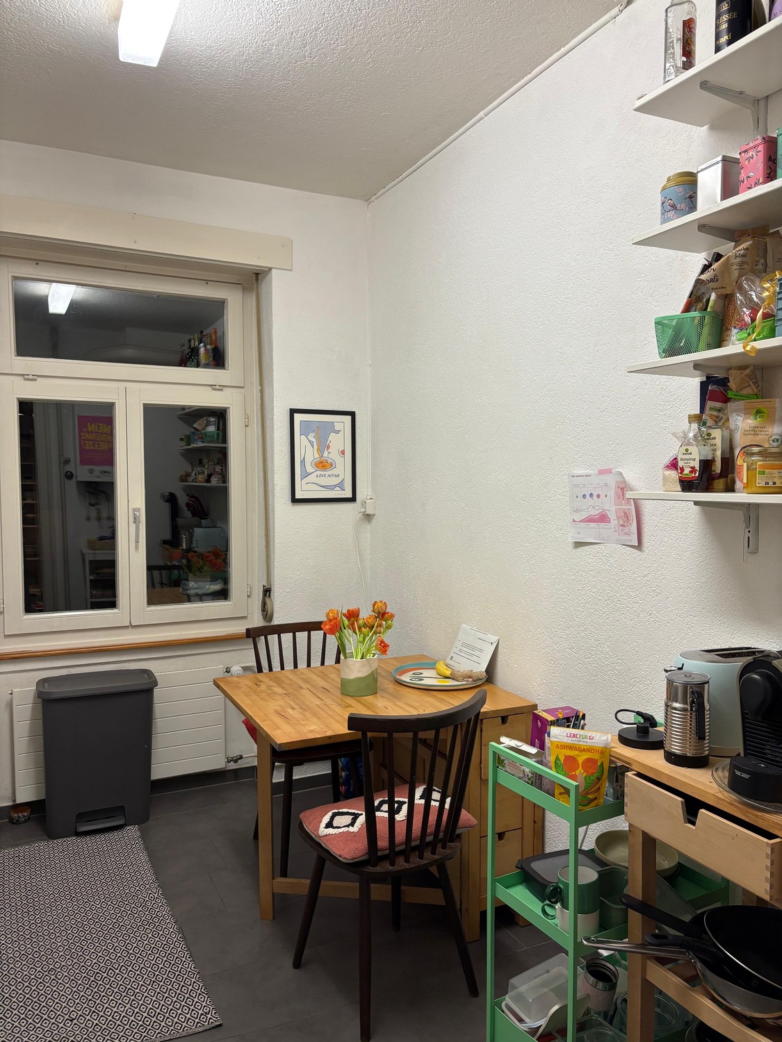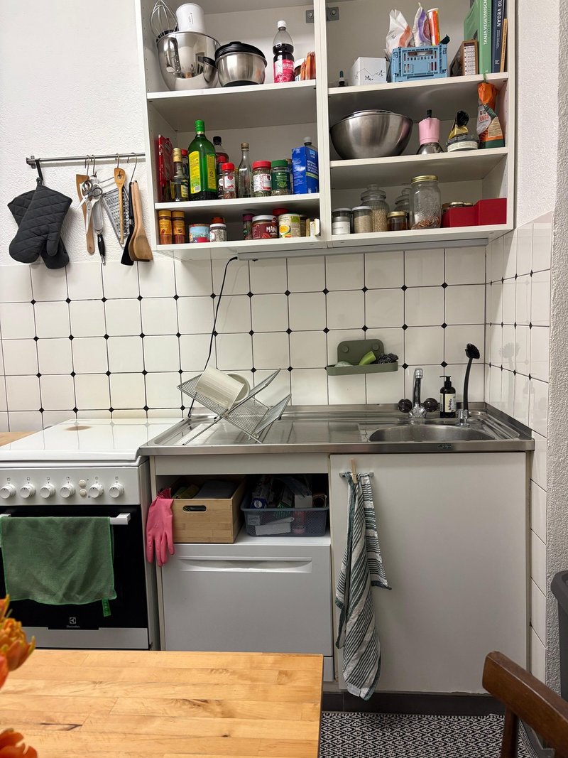 Du teilst die Wohnung mit einer sehr freundlichen 28-jährigen Mitbewohnerin. Die Atmosphäre im Block ist sehr angenehm. Eine Recyclingstation befindet sich in unmittelbarer Nähe.