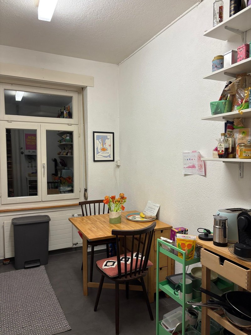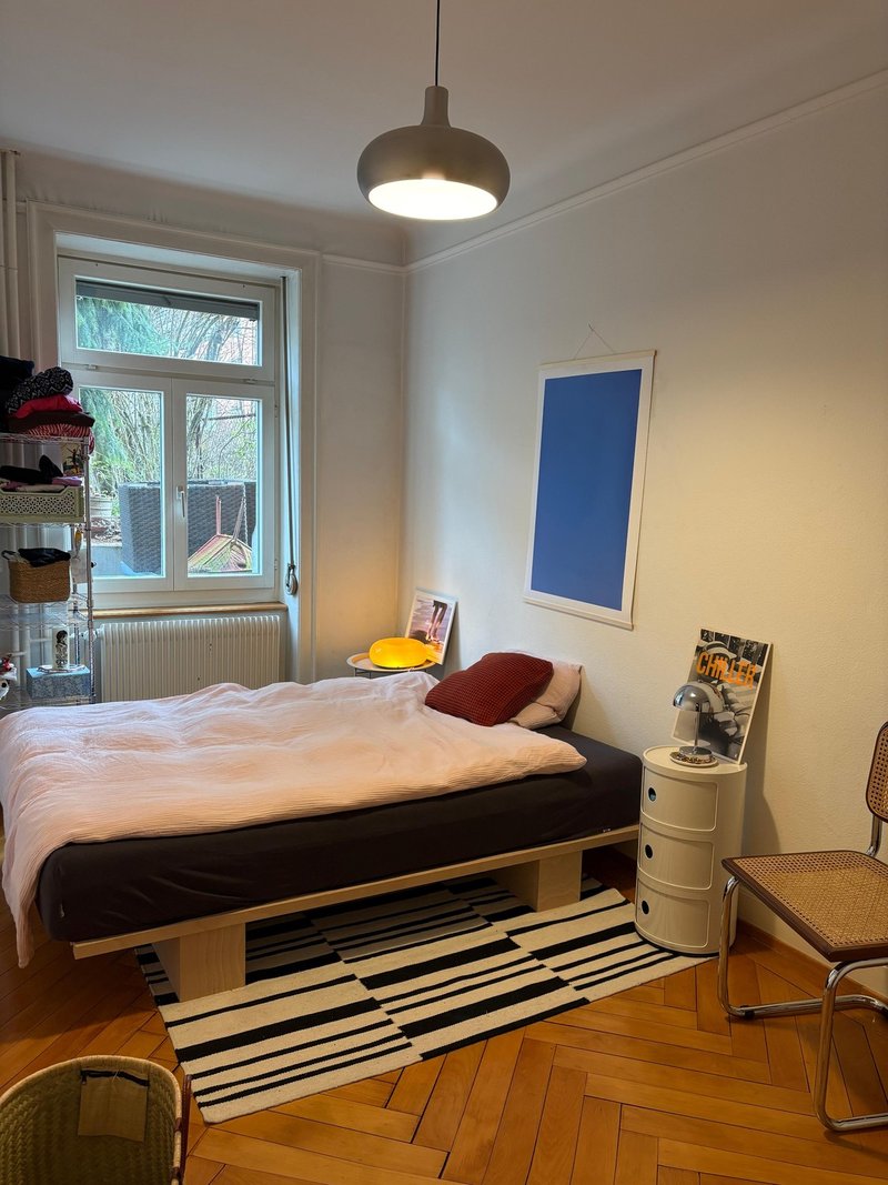Room for sublet in a beautiful 3.5-room period apartment in a central location (Schaffhauserplatz) from 01.03.2026 (or ASAP) to 30.06.2026. Zürich HB can be reached within 10 minutes by tram. The bathroom and toilet are separate rooms.