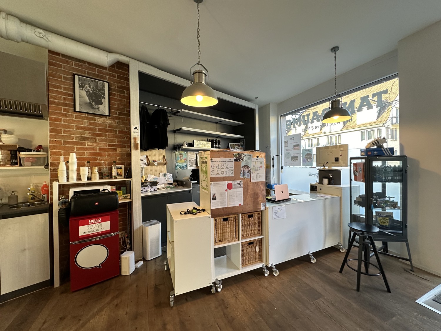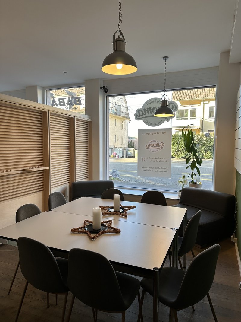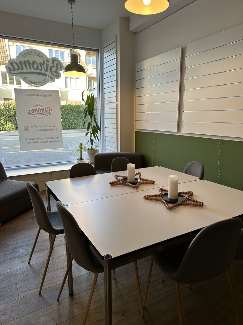 Die Räumlichkeiten wurden bisher als Café genutzt und sind entsprechend eingerichtet. Besonders attraktiv ist die vorhandene kleine Gastroküche, die weiterhin gastronomische Nutzung ermöglicht oder flexibel umgenutzt werden kann.