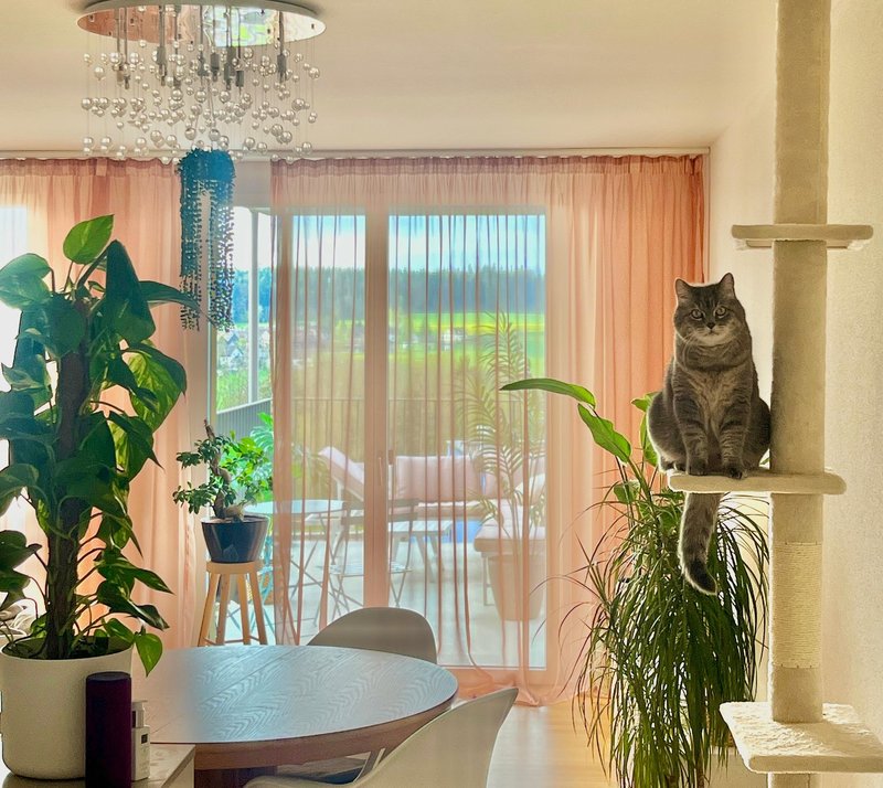 Meine Hauskatze und ich würden uns freuen das grosse helle Wohnzimmer, Balkon und die Küche mit dir zu teilen.
