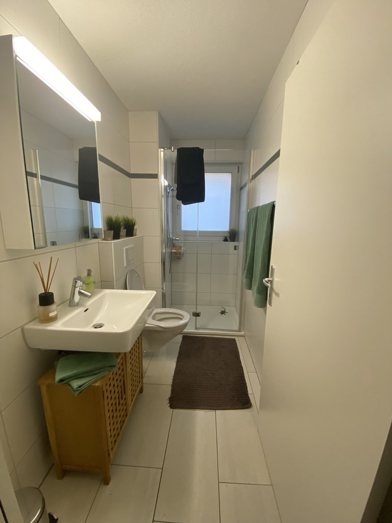 Ab 01.03.2026 wird das Gästezimmer frei. Zum möblierten Zimmer gehört ein eigenes Badezimmer. Ich (37ig weiblich) wohne alleine in der grossen 3.5 Zimmerwohnung. Die Wohnung ist grosszügig eingerichtet. Voll ausgestattete Küche, Laufband, Terassenlounge und grosser Garten. 5 Gehminuten von Bahnhof/ Bushaltestelle und Einkaufsmöglichkeiten.