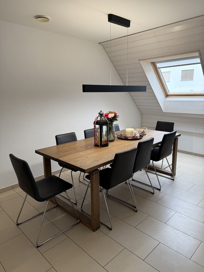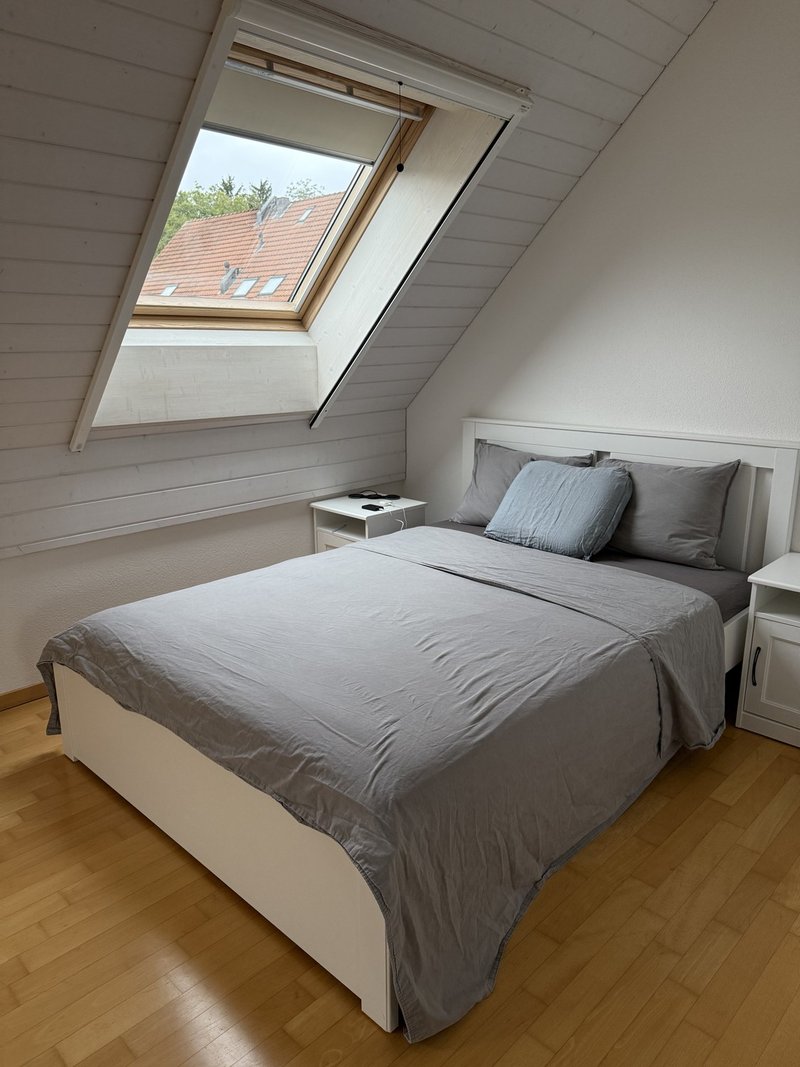 Ein vollständig möbliertes Zimmer in einer Wohngemeinschaft wird vermietet – eine helle und geräumige 3.5-Zimmer-Maisonettewohnung mit Balkon und zwei gemeinsamen Badezimmern.