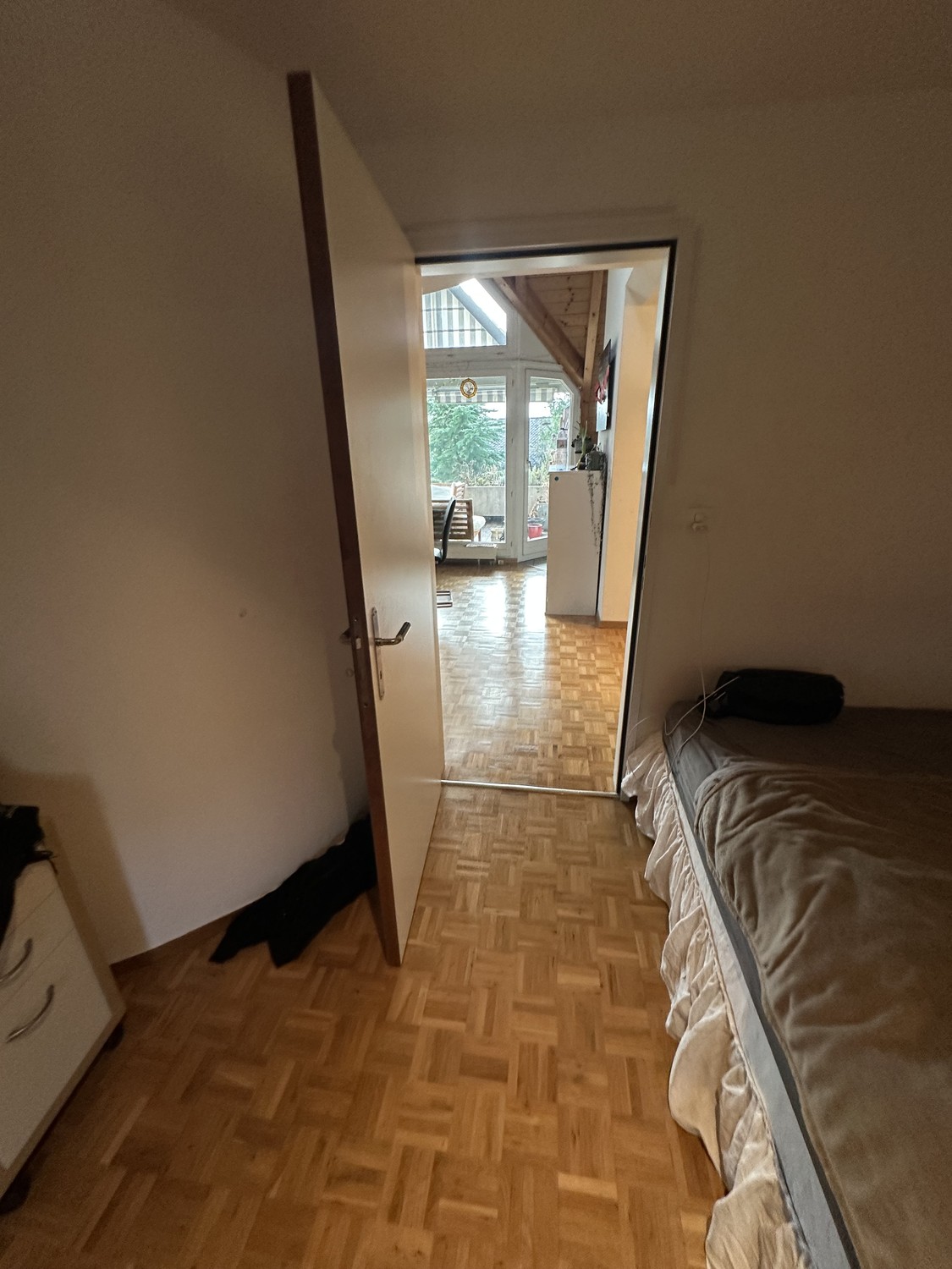 Die zwei weißen IKEA-Schränke würde ich bei meinem Auszug gerne für 40 CHF abgeben. Es wäre schön, wenn sie jemand übernehmen möchte – ansonsten wird das Zimmer leer übergeben.