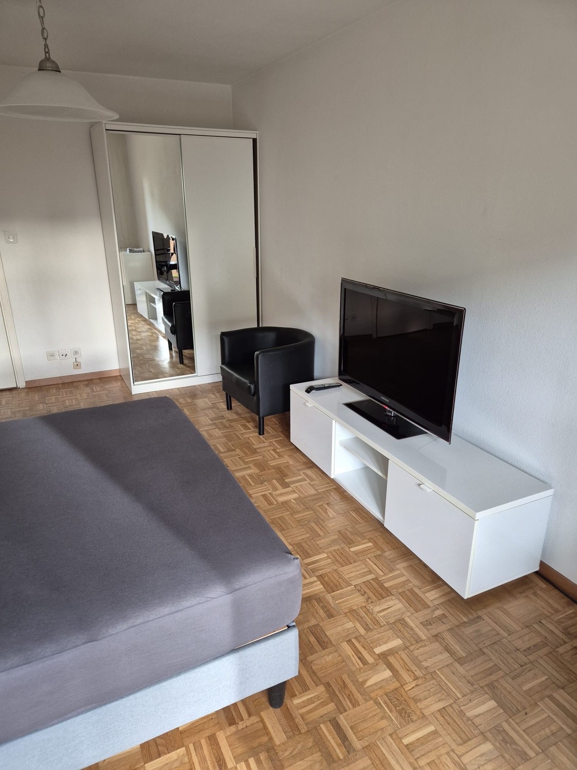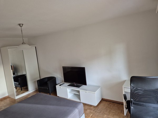- Helles Schlafzimmer mit Bett & Schreibtisch