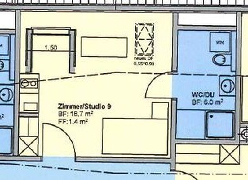 Die Wohnung bietet ein helles Wohn-/Schlafzimmer, eine praktische Küche sowie ein Badezimmer. Dank der guten Anbindung sind umliegende Ortschaften schnell erreichbar.