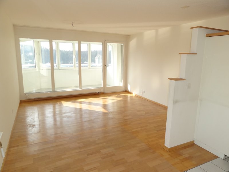 Die Wohnung überzeugt durch viel Tageslicht, grosse Fensterfronten und eine tolle Aussicht. Das grosszügige Wohnzimmer bietet direkten Zugang zu einem gemütlichen Wintergarten, der sich perfekt zum Entspannen eignet.