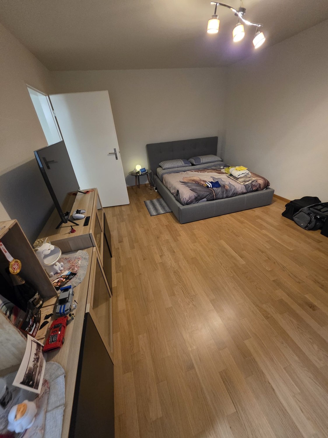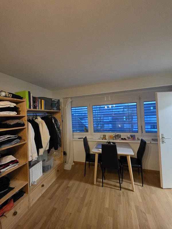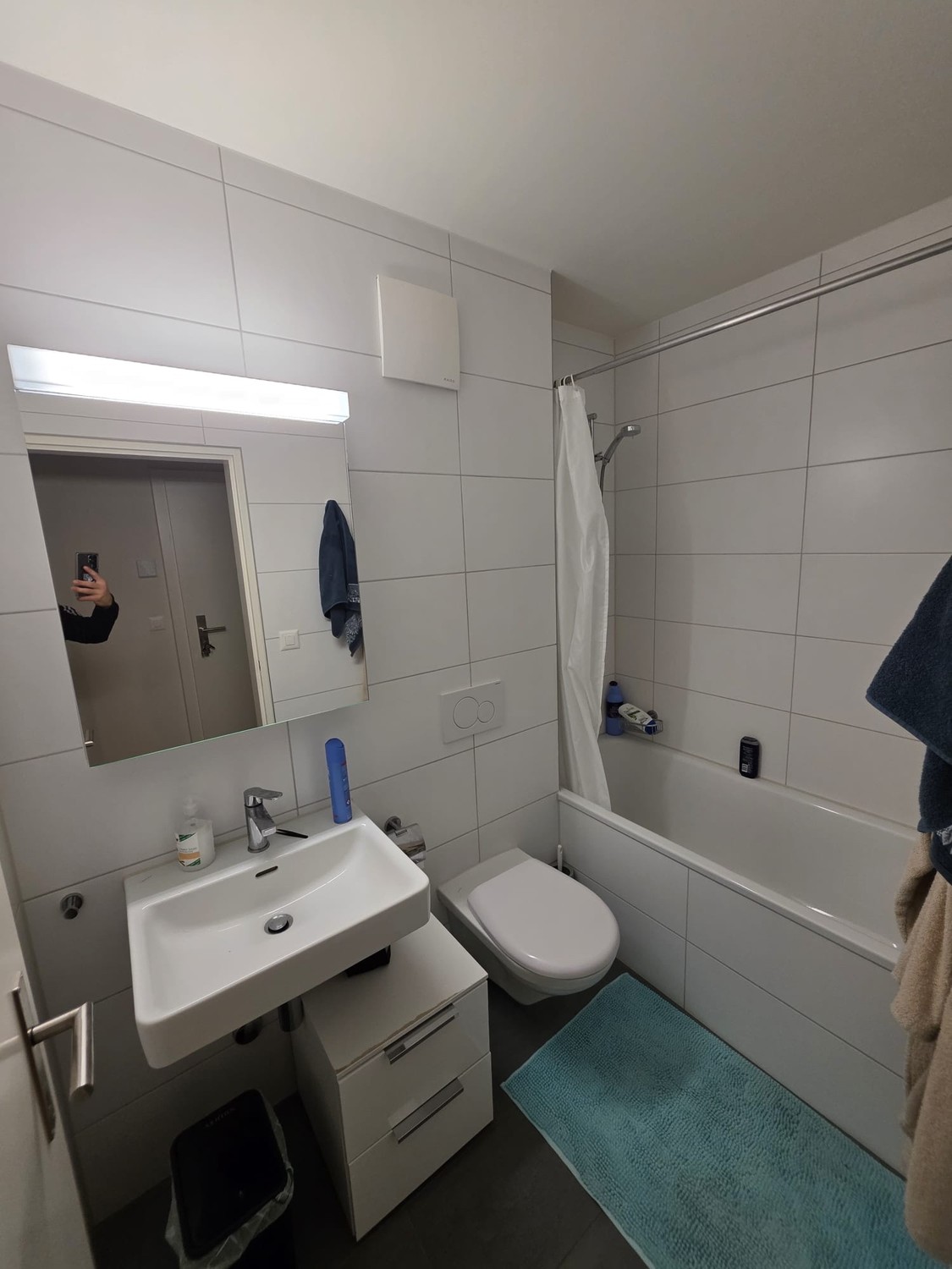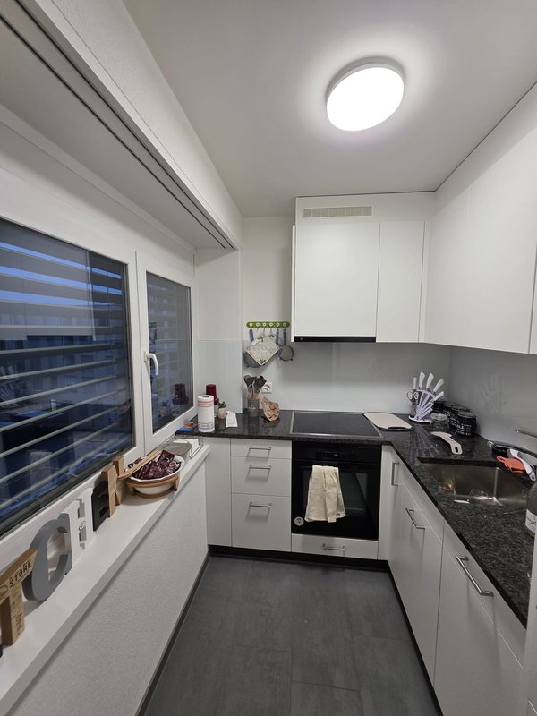 Nice flat on the last floor in Kloten. From 15th December until end of January or beginning of February. 10 min till zurich airport. House is right on the bus station. Common washing room in the basement, no schedule, no time limit on washing. Price per month 1500chf WiFi included