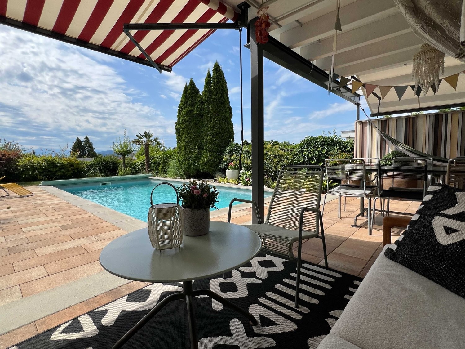Freistehendes Einfamilienhaus an perfekter Lage mit Aussicht, Pool, Kamin, 4 Schlafzimmern, einer grossen Küche und einem Wohnzimmer mit stilvoller Inneneinrichtung. Komplette einrichtung vorhanden, 160m², im 1. Stock, 2 Terrassen, Garten, Gartensitzplatz, Pergola, 2 eigene Parkplätze, Autobahneinfahrt in der Nähe. Inkl. Heizung, Strom, Wasser, Internet, TV (inkl. Anschluss und Abo), ...
