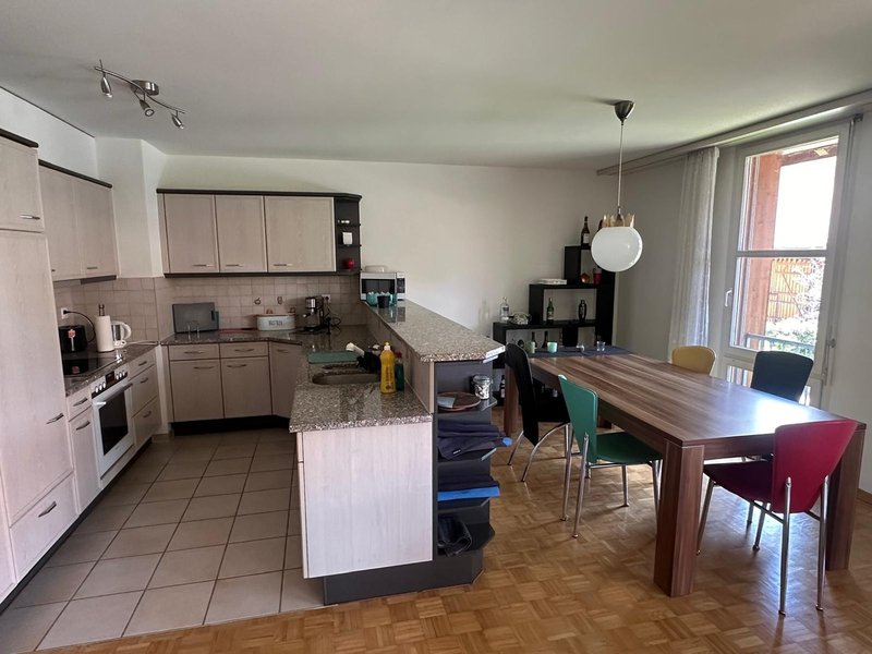 Die Wohnung im ehemaligen Bauernhaus ist liebevoll ausgebaut mit hellen Zimmern, Bodenheizung und Parkettboden. Zudem verfügt die Wohnung über einen grossen Balkon, eine offene Küche mit Geschirrspühler und ein grosses Wohnzimmer mit Essbereich.