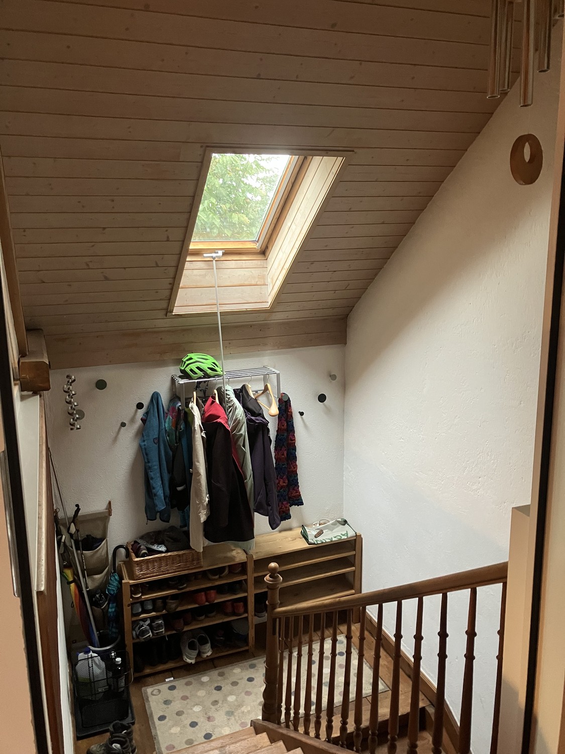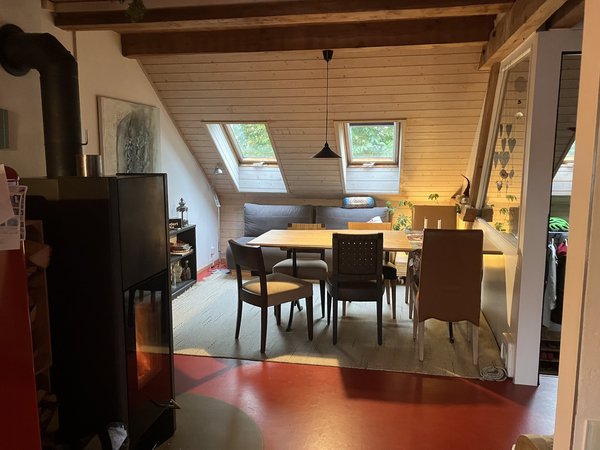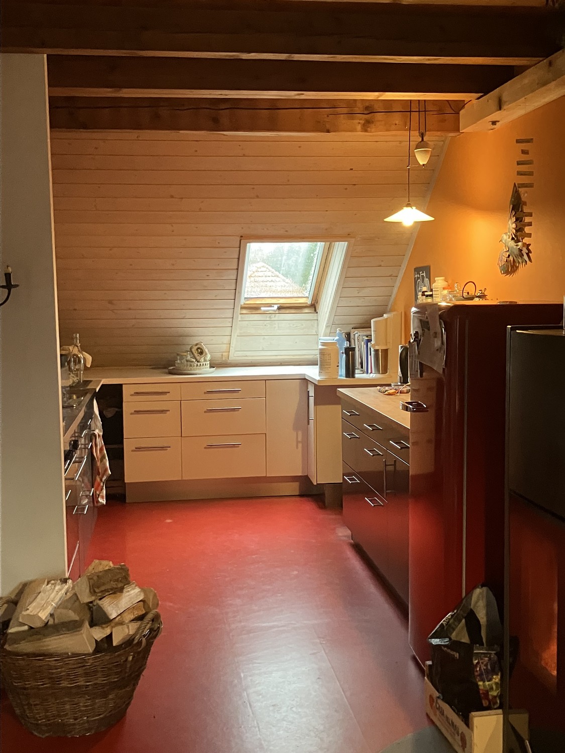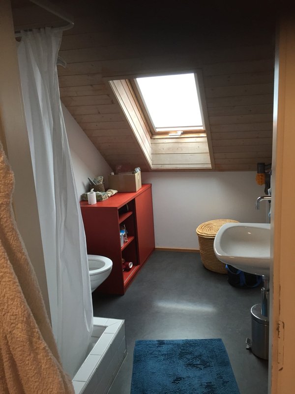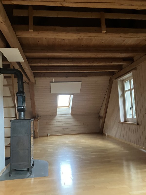 Ich (w/59) suche ruhige Mitbewohnerin (NR, keine Haustiere) für das grosszügige Zimmer mit Galerie, Heizung mit Holz oder Infrarot, kein Geschirrspüler, Waschmaschine im Keller für alle 4 Parteien (ohne Plan), Parkplatz und Velounterstand steht zur Verfügung.