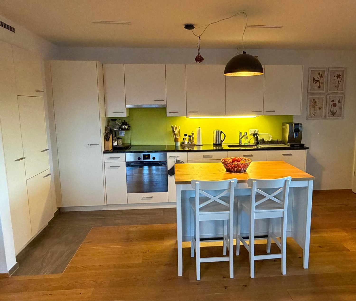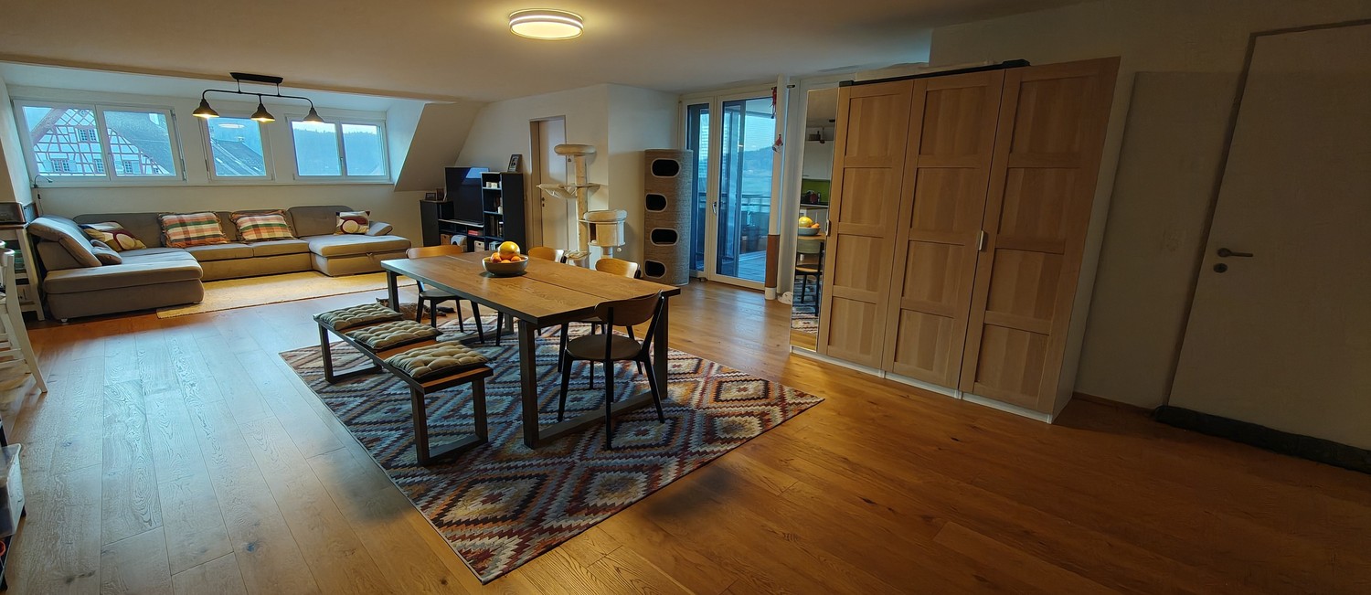 Diese sehr helle, 138 m2 Große und offene Dachwohnung befindet sich im Bärenhof. Ein Lift bringt Sie, wenn gewünscht von der Tiefgarage direkt vor die Wohnungstüre. Bei der Erstellung wurden nur hochwertige Materialien verwendet, die baubiologisch unbedenklich sind. Ein Eichenparkett verströmt einen wohnlichen Charme. In den Nasszellen hat es natürlich Plattenbeläge. Ein eigener Waschturm mit modernsten Geräten sorgt für zusätzlichen Wohnkomfort. Die geräumige Küche mit Geschirrspüler und Glaskeramikherd lädt zum Kochen ein. Aber was diese Wohnung sicherlich auszeichnet, ist die großzügige offene Bauweise mit einem großen Balkon. Ein Ort zum genießen und verweilen. Der Bärenhof steht mitten im Elgger Dorfkern mit seinem attraktiven Ladenangebot, in dem der tägliche Bedarf an Lebensmitteln eingekauft werden kann. Gerne zeigen wir ihnen unverbindlich diese Wohnung über den Dächern von Elgg.