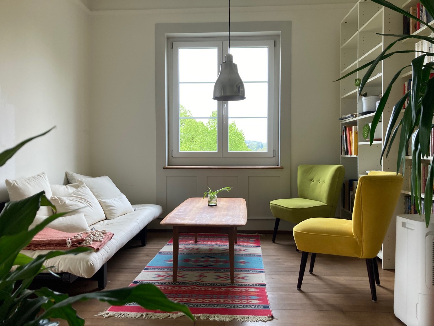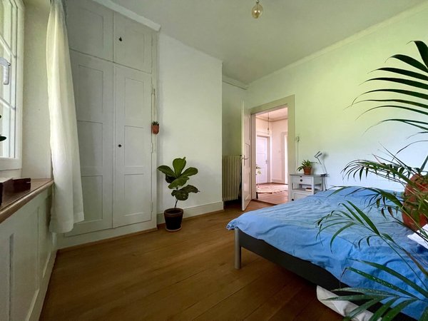 Das Zimmer ist 10m2 gross und befindet sich im 1. OG mit schönem Fenster nach Osten. Das Zimmer ist sehr gemütlich, und dank praktischem und geräumigem Einbauschrank hat man genügend Platz um sich gut einzurichten. Das Zimmer ist abgesehen vom Schrank unmöbliert (einfache Möblierung auf Anfrage). Das Bad und ein separates WC teilst du mit zwei Gspänli auf dieser Etage. Die Raumhöhe beträgt 2.8m.