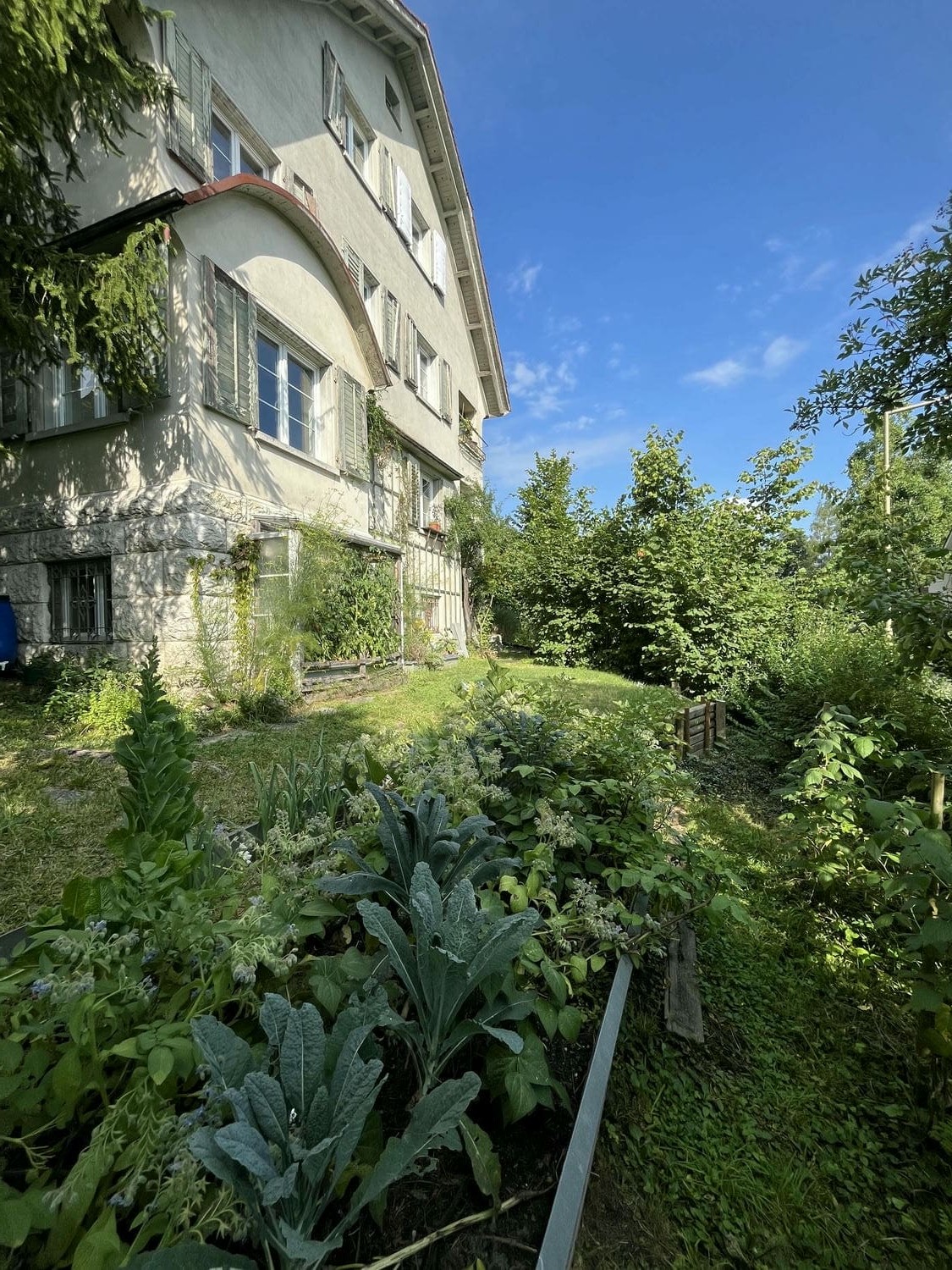 Das Haus ist über 100 Jahre alt, freistehend und hat 3 Wohngeschosse, die wir uns zu fünft teilen. Es bietet viel Platz und Räume für Begegnung, wie auch Rückzugsmöglichkeiten. Zum Haus gehört ein Garten mit mehrern gemütlichen Sitz- und Liegeplätzen und einer Feuerstelle.