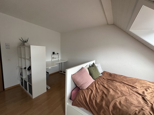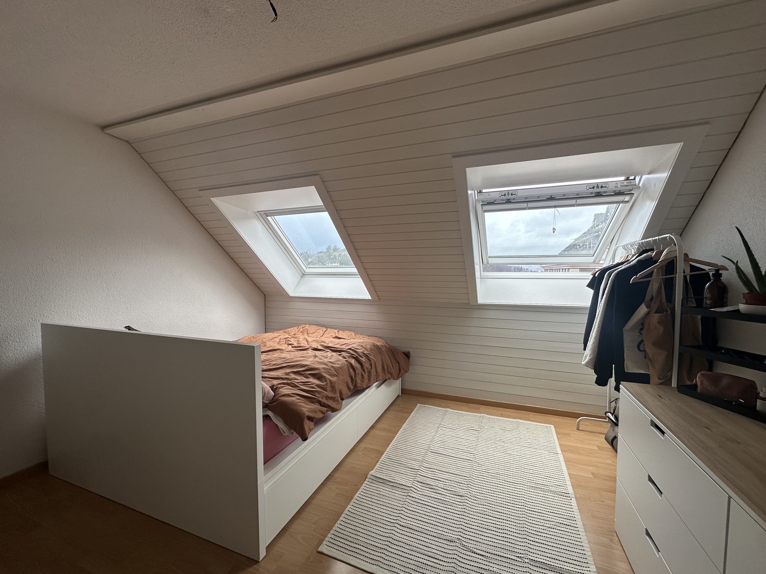 Dein neues Zimmer ist ungefähr 14 Quadratmeter gross und sehr lichtdurchflutet. Das Badezimmer teilst du mit zwei weiteren Mitbewohnern. Du hast zwei Dachfenster, mit denen du auf den Brühlberg und weitläufig ins Grüne siehst. Die Miete beträgt CHF 700.00 (inklusive Internet) und die Kaution CHF 1’412.00.
