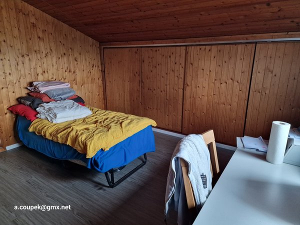 Mansarden WG-Zimmer in Zweifamilienhaus zu vermieten, 4km von Winterthur (15 Minuten mit ÖV). Das Zimmer ist 30m2 gross (im Zimmer Vinylboden) und teilmöbliert (Kleiderschrank, Bett). Das Haus liegt idyllisch gleich beim Waldrand. Ein eigenes Bad mit Dusche steht zur Verfügung; Küche, Waschmaschine zur Mitbenützung. Internet/WiFi vorhanden.