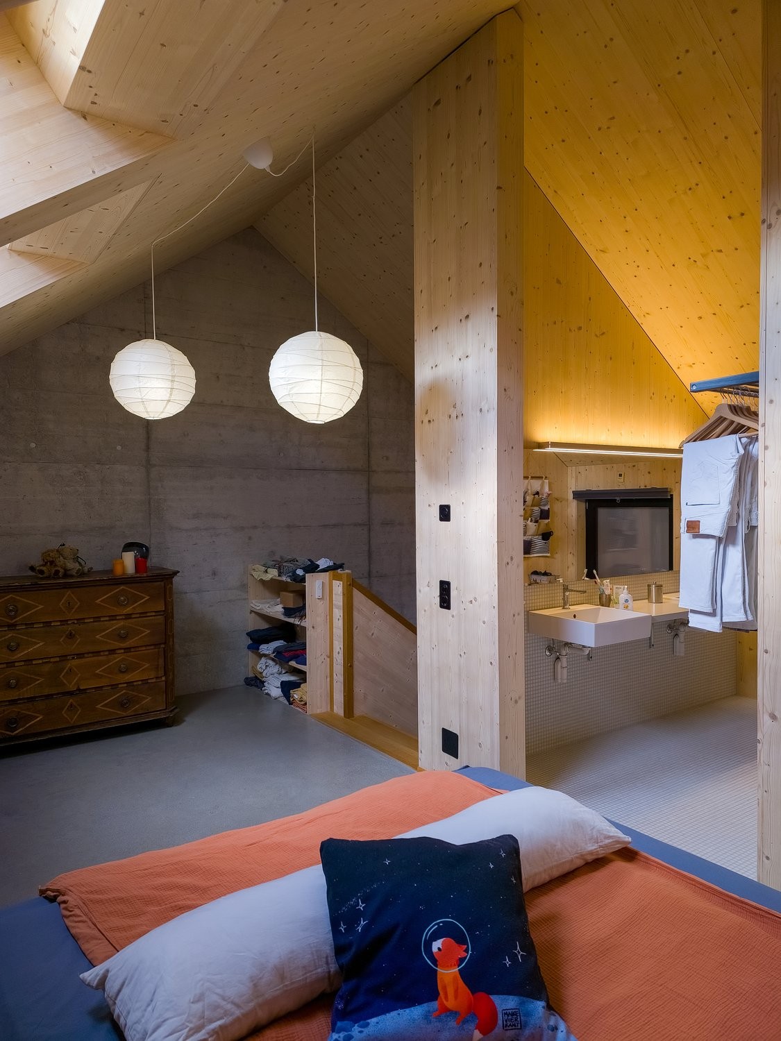 Ruhig gelegenes Haus (Minergie-P) am Dorfbach mit überhohen, hellen Räumen und Galerie. Zwei Balkone (einer Südseite) und Sitzplatz. Fast alle Zimmer mit Smart Light für flexible Stimmung, 91m², im 3. Stock, 2 Balkone, 1 Terrasse, Garten, Gartensitzplatz, 1 eigener Parkplatz, 1 eigene Garage. Inkl. Heizung, Strom, Wasser, Internet, ...