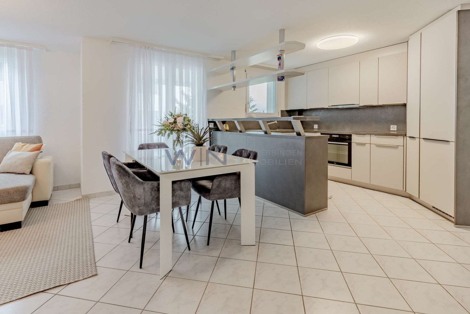 + ANNEHMLICHKEITEN: barrierefrei, grosszügige gedeckte Terrasse, Laminat/zeitlose Fliesen, moderne offene Küche, helle Räume, Aufzug, WM/Tumbler in Wohnung, geräumige Badezimmer, Kellerabteil