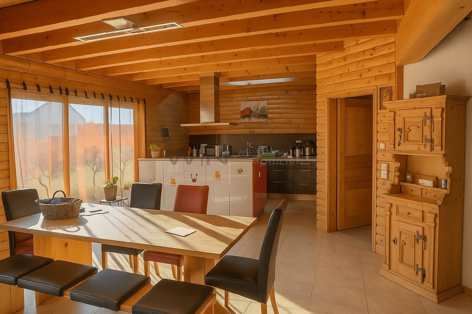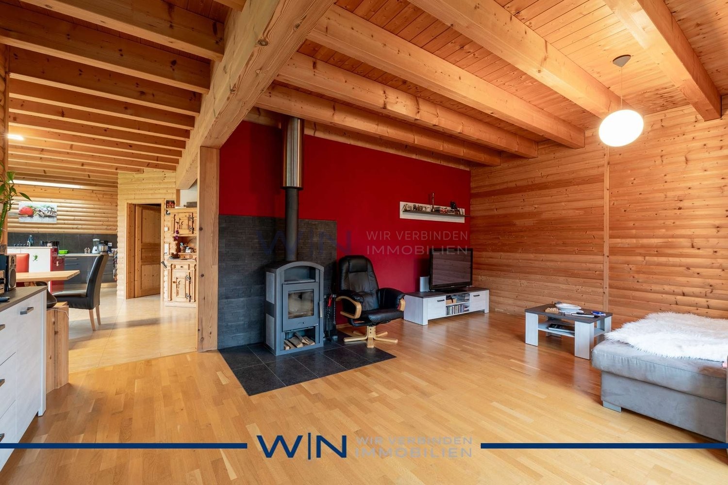 Dieses charmante Holzhaus bietet ein warmes und einladendes Zuhause für die ganze Familie. Die hellen Räume sorgen für eine freundliche Wohnatmosphäre und lassen viel Raum für individuelles Einrichten. Eine gemütliche Veranda lädt zum Verweilen ein und erweitert den Wohnraum nach draussen.