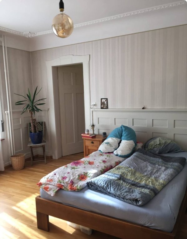 Die Wohnung besticht durch ihren klassischen Altbau Charme mit schönen Parkettböden, stilvollen Wandverzierungen und grossen Fenstern, die für viel Tageslicht sorgen.